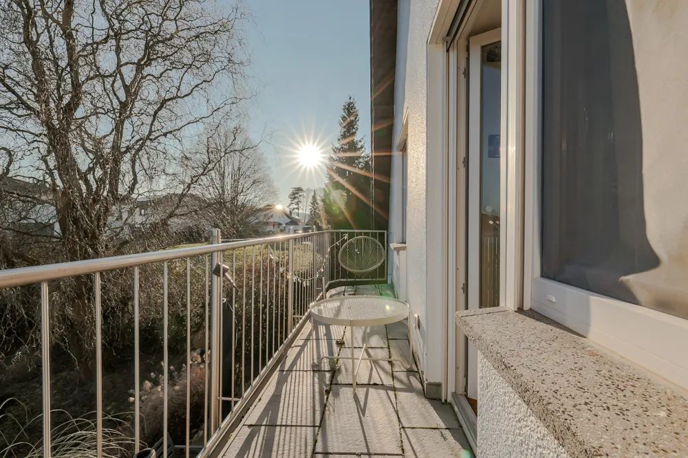Der große Balkon kann von zwei der drei Schlafzimmer des Obergeschosses aus betreten werden.