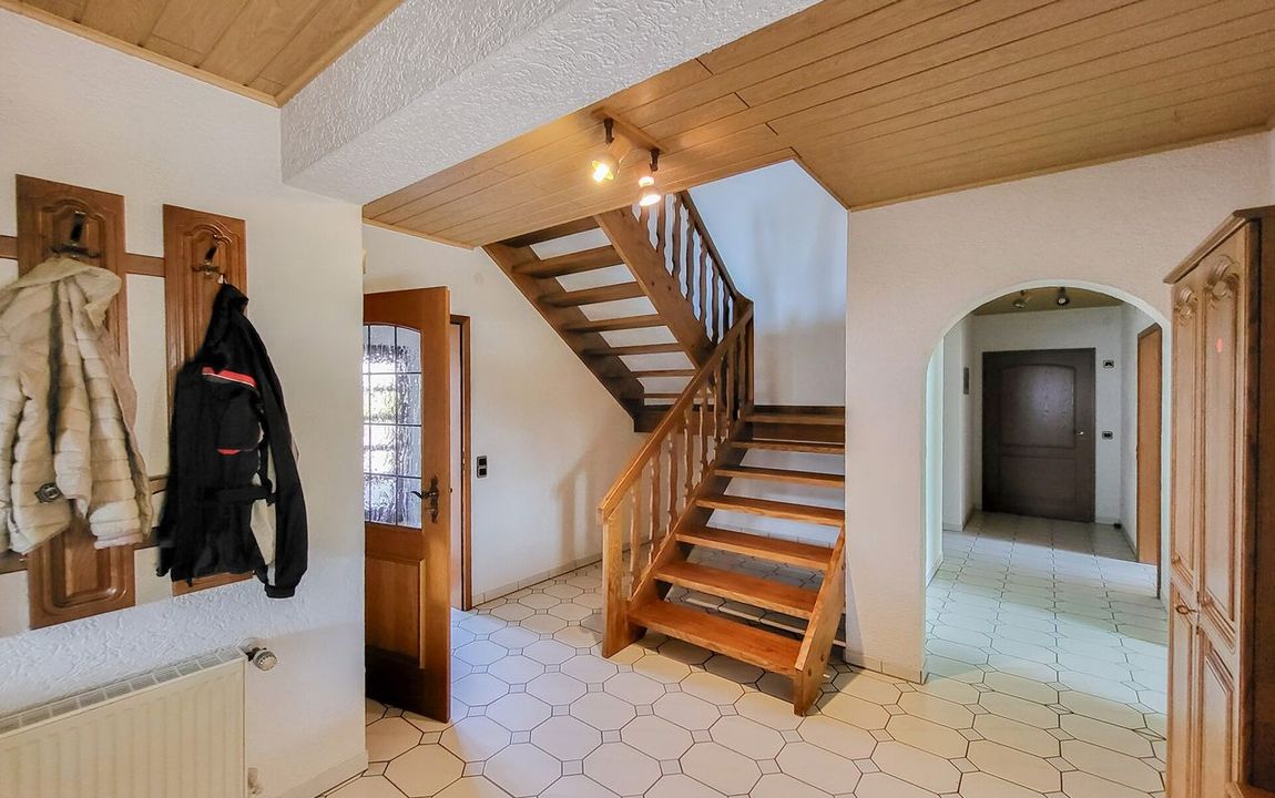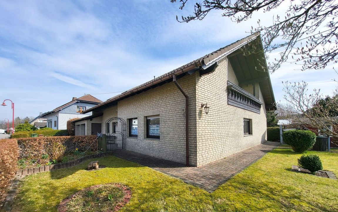 Auf dem ca. 924 m² großen Grundstück wurde im Jahr 1990 dieses großzügige, gut durchdachte, Einfamilienhaus in Massivbauweise errichtet. Das komplette Erdgeschoss ist barrierefrei und bietet Ihnen Zugang zur Doppelgarage und dem schön angelegten Garten mit Gartenhaus und einem kleinen Teich. Im Erdgeschoss befinden sich eine einladende Diele, eine Küche mit großem Hauswirtschaftsraum sowie ein großzügiger Essbereich, der fließend in das Wohnzimmer übergeht. Dieses wird durch einen Kamin ergänzt, der eine besonders gemütliche Wohnatmosphäre schafft und zum Verweilen einlädt. Darüber hinaus stehen im Erdgeschoss zwei weitere Zimmer zur Verfügung, die vielseitig nutzbar sind. Ergänzt wird das Raumangebot durch ein Gäste-WC sowie eine barrierefreie Dusche, die zusätzlichen Komfort und Flexibilität im Alltag bietet.