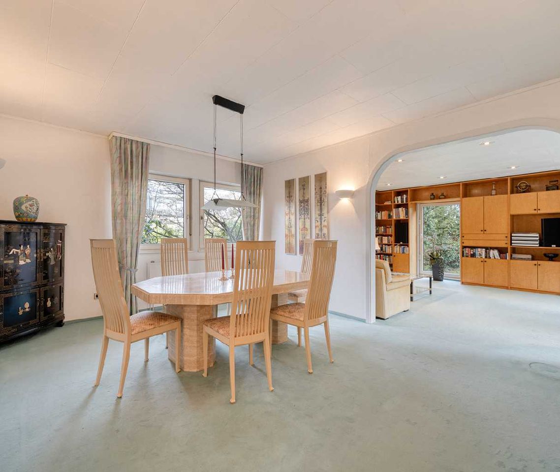 Das freistehende und vollunterkellerte Einfamilienhaus wurde im Jahr 1977 auf einem ca. 627 m² großen, blickgeschützten Grundstück als OKAL-Fertighaus errichtet. Die Wohnfläche von rund 186 m² verteilt sich auf zwei Etagen mit insgesamt sieben Zimmern und bietet damit großzügige Platzverhältnisse für Familien oder für Wohnen und Arbeiten unter einem Dach.