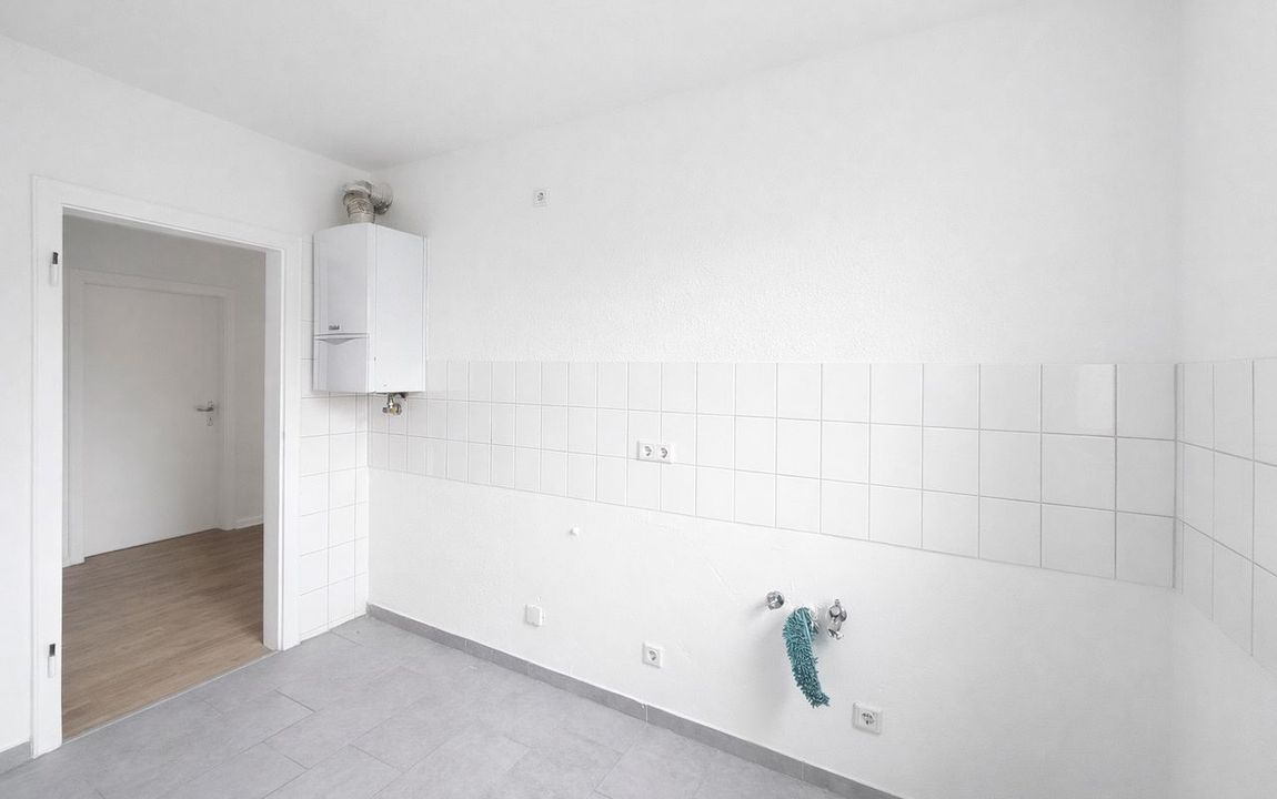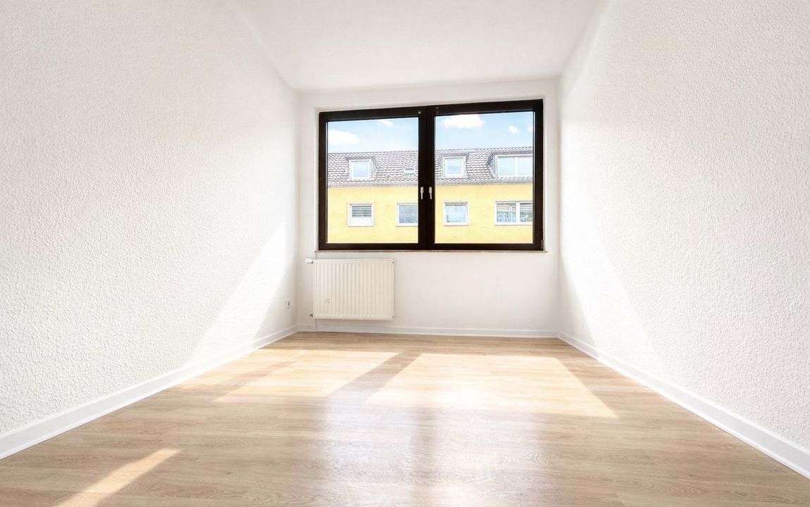 Neben dem Wohn- und Essbereich stehen drei weitere Zimmer zur Verfügung, die flexibel als Schlaf-, Kinder- oder Arbeitszimmer genutzt werden können. Die separate Küche bietet ausreichend Platz für die Gestaltung einer individuellen Einbauküche. Das Badezimmer ist funktional ausgeführt und ergänzt das Raumangebot sinnvoll.