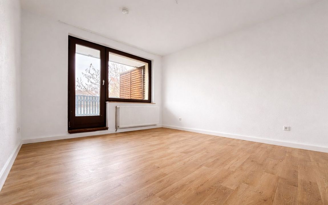 Der großzügige Wohn- und Essbereich bildet den Mittelpunkt der Wohnung. Vom Essbereich aus gelangt man direkt auf den angrenzenden Balkon, der zusätzlichen Wohnkomfort bietet und zu erholsamen Stunden im Freien einlädt. Große Fensterflächen sorgen in den Wohnräumen für eine helle und freundliche Atmosphäre.