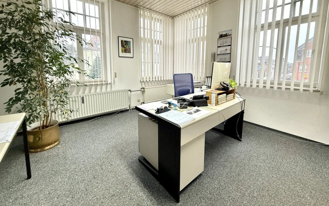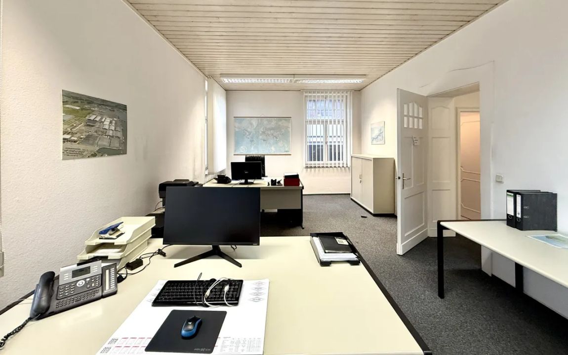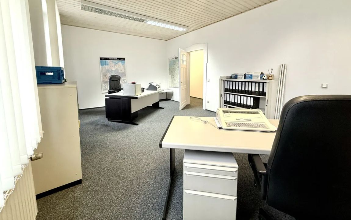 Die Büroräume sind durchgehend mit Teppichboden ausgestattet, der eine angenehme Arbeitsatmosphäre schafft und zur Schalldämmung beiträgt.