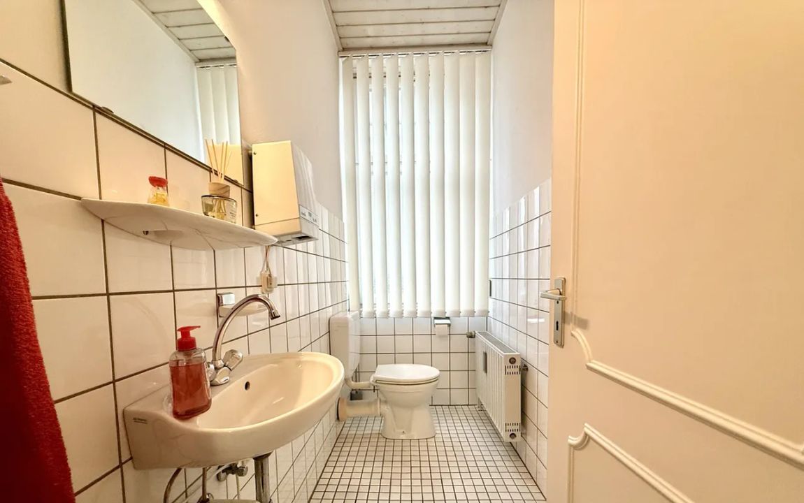 Für den täglichen Komfort sorgen getrennte Damen- und Herrentoiletten sowie eine Teeküche, die ideal für Pausen und die Versorgung der Mitarbeitenden geeignet ist.