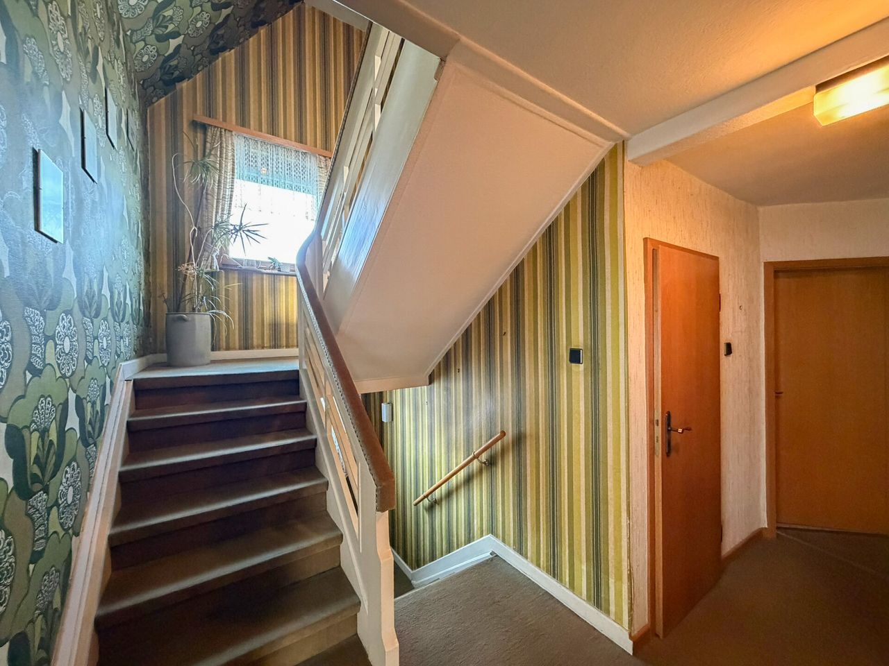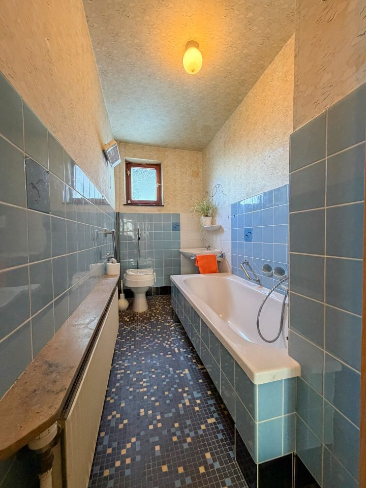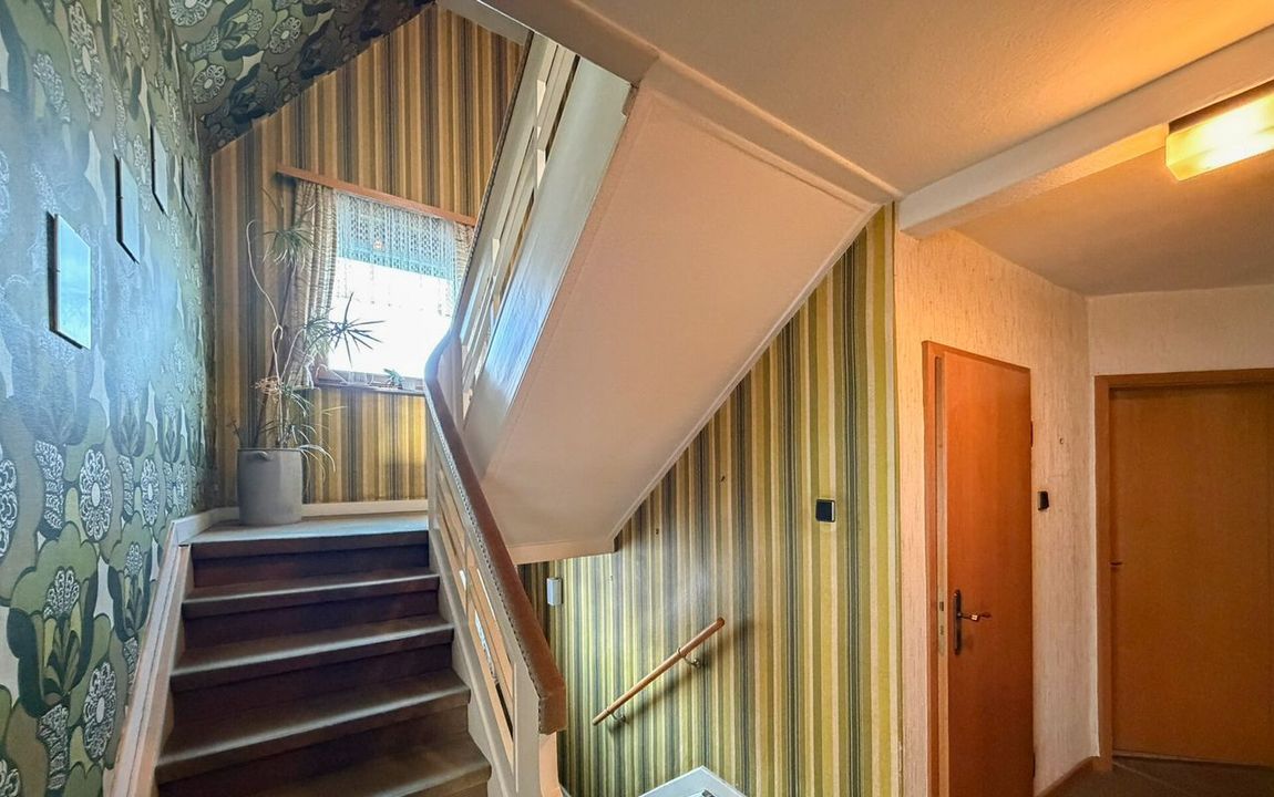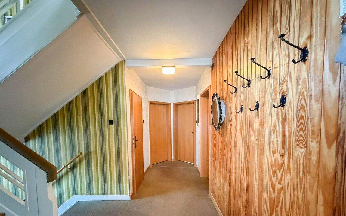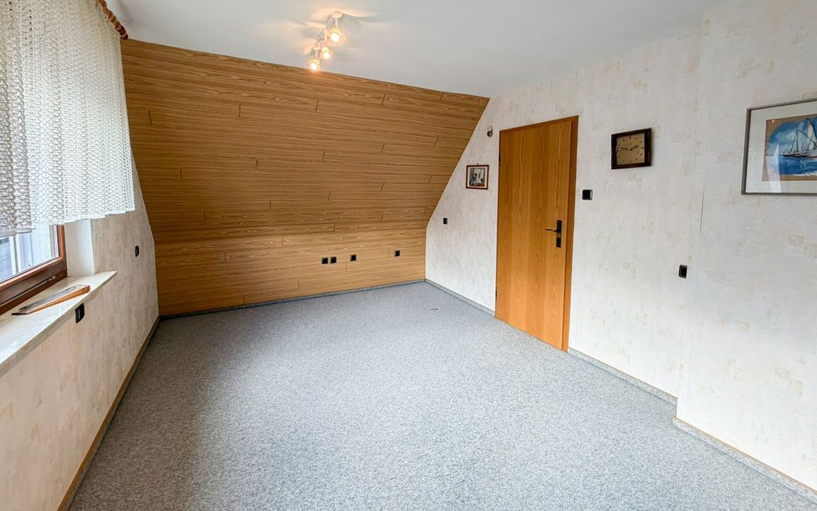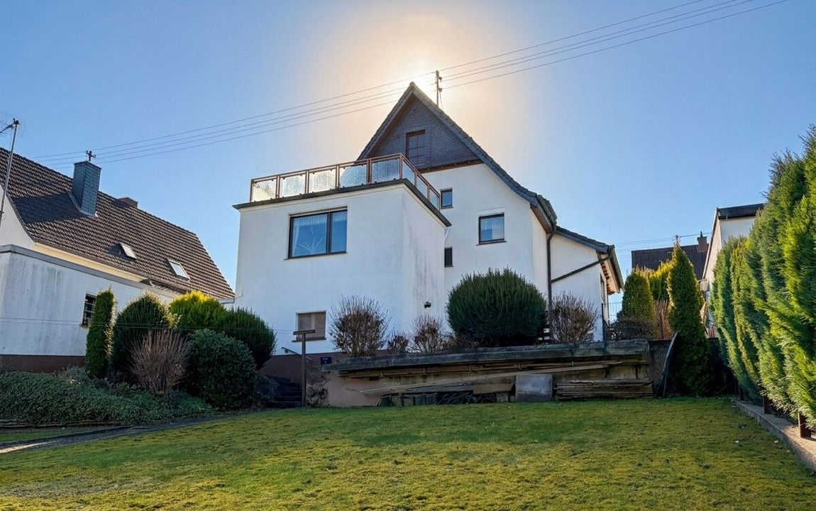 Hier genießen Sie die Ruhe einer Seitenstraße, ohne auf die Annehmlichkeiten einer modernen Kleinstadt verzichten zu müssen. Dieses einladende Einfamilienhaus hat seinen Ursprung im Jahr 1938 und wurde um 1959/60 durch einen Anbau erweitert. Das Wohnhaus präsentiert sich auf einer soliden Grundsubstanz, die eine hervorragende Basis bietet, um sich den Traum vom individuellen Eigenheim zu verwirklichen. Mit einer Wohnfläche von ca. 130 m² eignet sich das Haus sowohl perfekt für Paare mit Familienplanung als auch für Familien mit zwei Kindern. Das Raumangebot wird durch den ausgebauten Spitzboden ergänzt, der zusätzliche Nutzfläche für ein ruhiges Home-Office (mgl. ist ein Highspeed-Internet mit bis zu 100 MBit/s, der Ausbau von modernem Glasfaser ist bereits in Planung) oder ein gemütliches Lese-/Spielzimmer bietet. Ein besonderes Highlight ist die großzügige Dachterrasse im Obergeschoss, die mit einer unverbaubaren Aussicht besticht und den perfekten Ort für entspannte Stunden im Freien bietet. Im Außenbereich lädt der gepflegte Garten zum Verweilen und Spielen ein, während zwei Einzelgaragen ausreichend Platz für PKWs und zusätzlichen Stauraum garantieren.