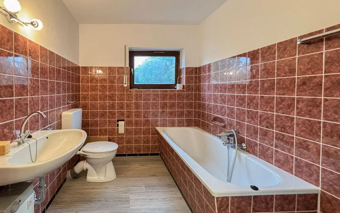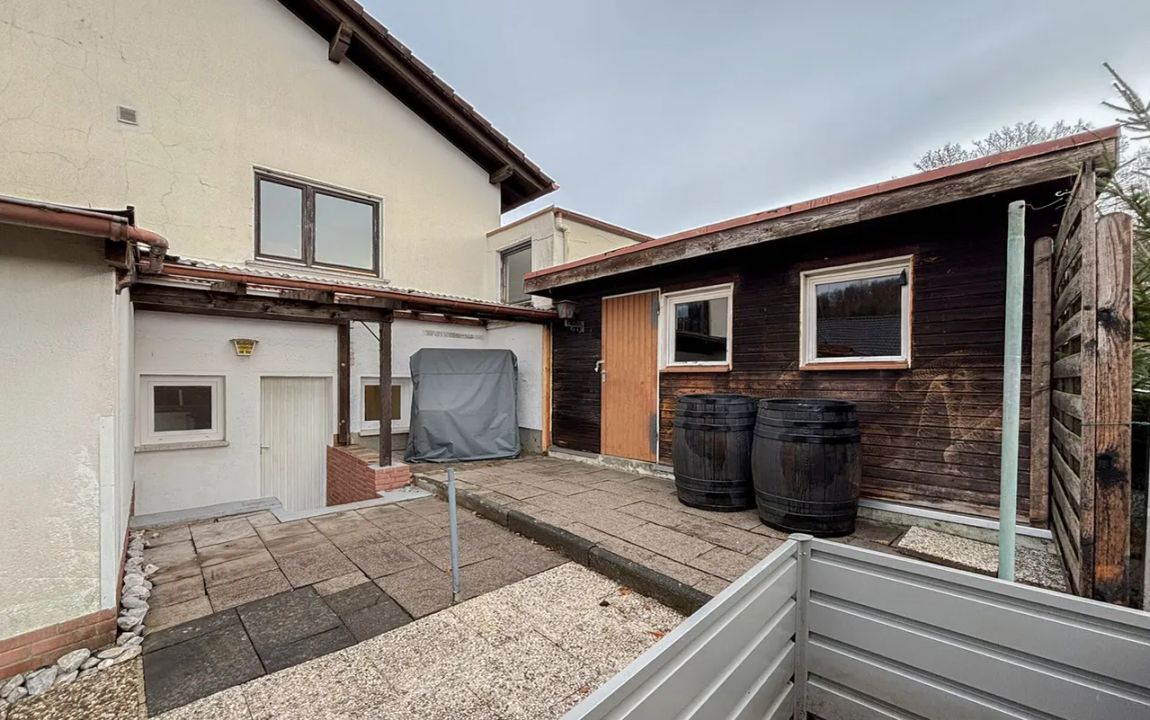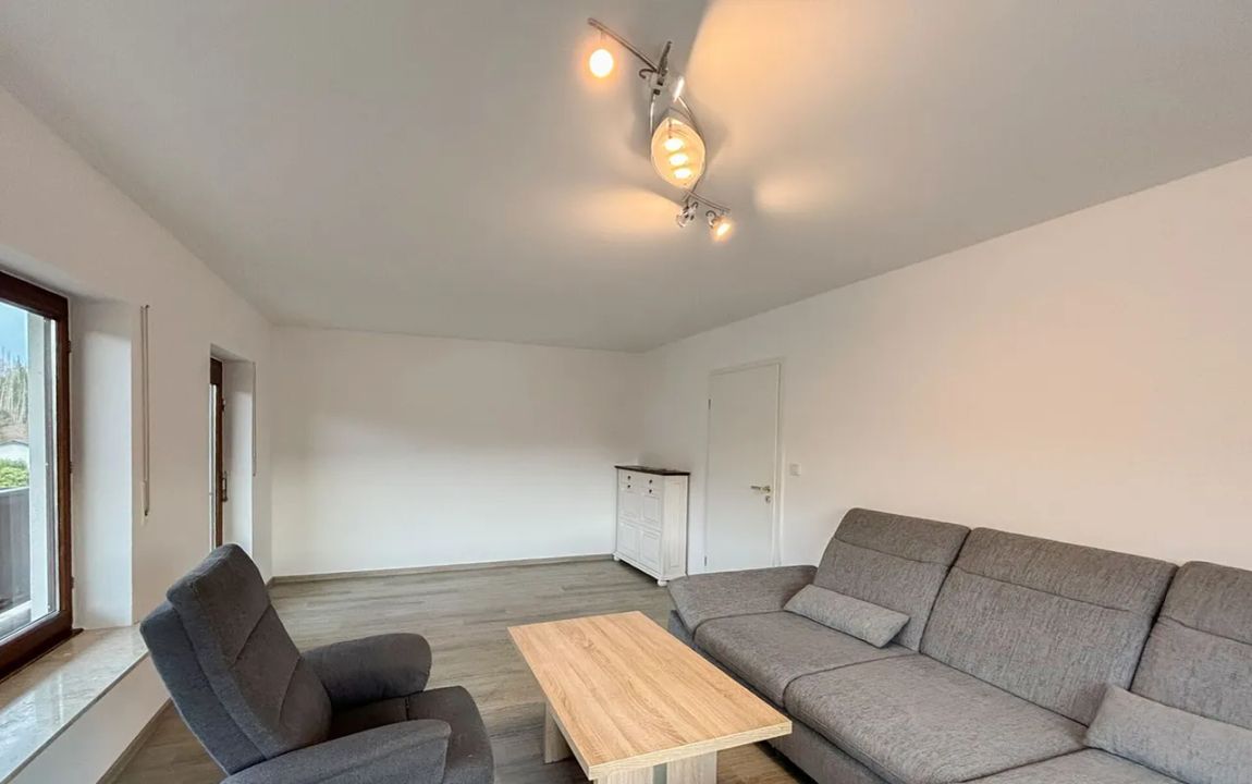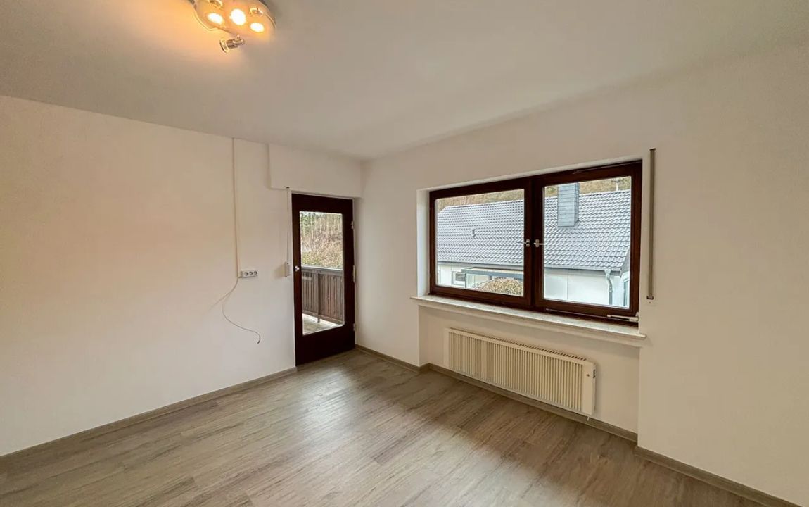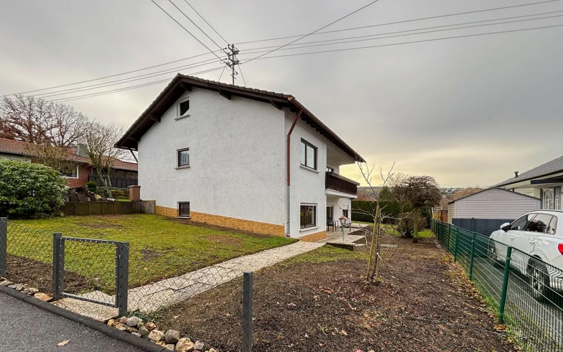 Dieses sehr gepflegte Einfamilienhaus präsentiert sich in einem frisch renovierten Zustand und kann sofort bezogen werden. Die Hauptwohnung bietet idealen Wohnkomfort für einen Drei-Personen-Haushalt und überzeugt mit einer gelungenen Raumaufteilung sowie einem modernen Ambiente. Besonders hervorzuheben ist das neuwertige Badezimmer mit barrierearmer Dusche. Der Balkon, sowohl vom Elternschlafzimmer als auch vom Wohnzimmer aus erreichbar, bietet einen herrlichen Ausblick und lädt zu erholsamen Stunden im Freien ein.