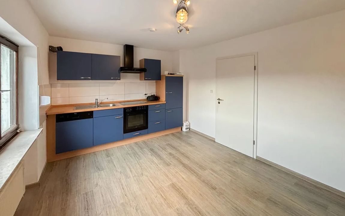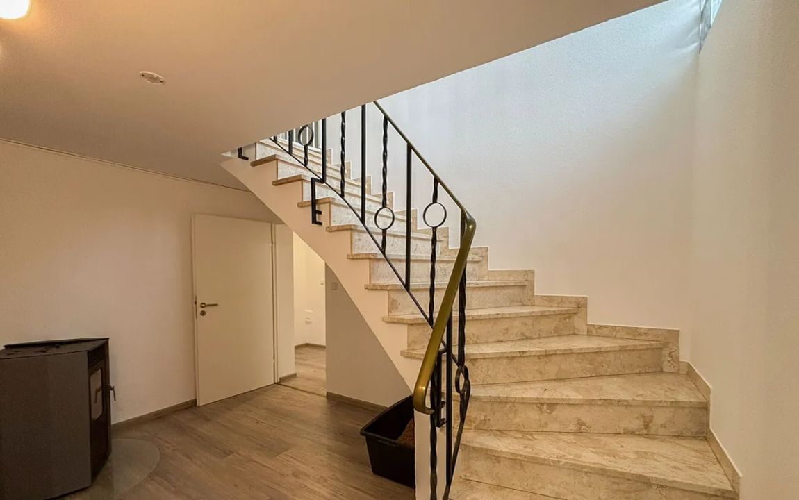 Im Untergeschoss befindet sich eine gemütliche Wohnung, bestehend aus zwei Zimmern, Küche und Badezimmer. Sie ist über einen separaten Eingang zugänglich und bietet sich sowohl für die Vermietung an als auch für größere Kinder oder die Großeltern – sie ist lediglich durch eine Zimmertür vom oberen Wohnbereich abgetrennt und schafft dadurch zusätzlichen Platz. Während das Badezimmer im Untergeschoss dem Baujahr der Immobilie entspricht, zeigt sich das übrige Haus in einem durchweg modernen und gepflegten Erscheinungsbild. Zusätzlich besteht im Eingangsbereich der ELW die Möglichkeit, eine geschützte Terrasse herzurichten und so einen weiteren angenehmen Außenbereich zu schaffen.