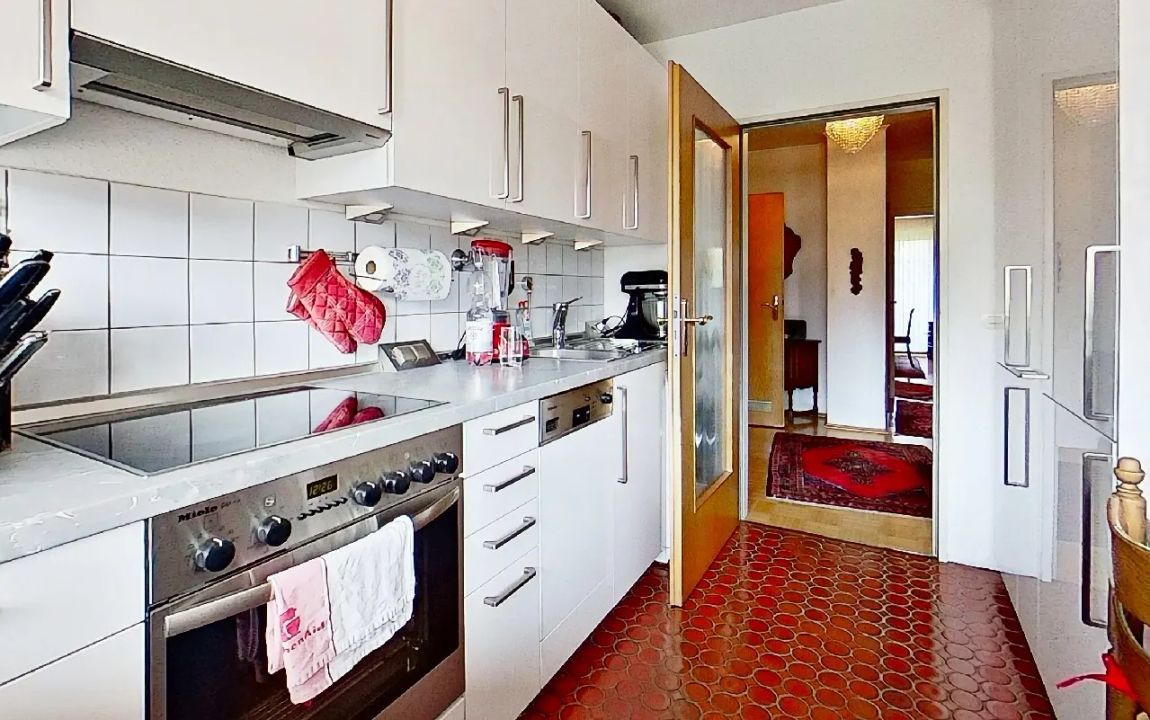 Eine geräumige Küche und ein separater Schlaftrakt mit zwei Schlafzimmern, Bad und G-WC sowie einem weiteren großen Balkon zur Gartenanlage runden das interessante Angebot ab. Das gesamte Objekt verfügt über eine solide und gediegene Ausstattung. Eine hochwertige Einbauküche ist bereits inklusive.