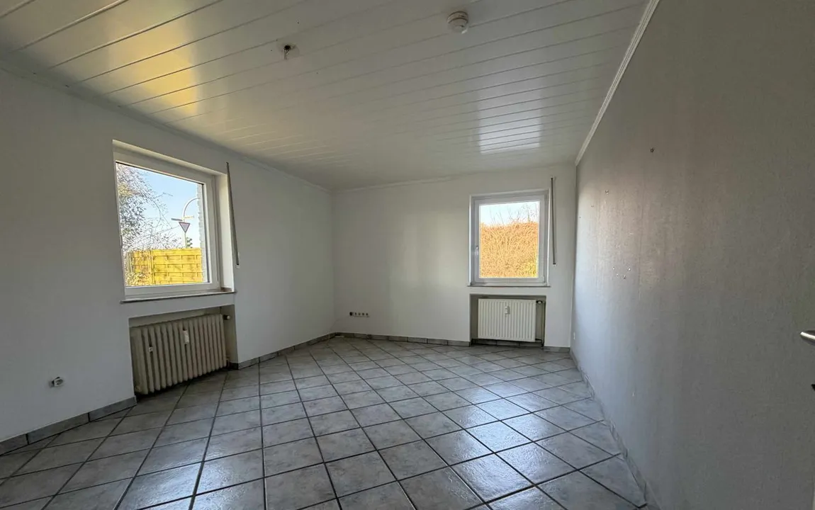 Angeboten wird ein Zweifamilienhaus mit zwei recht ähnlich geschnittenen Wohnungen und insgesamt ca. 172 m² Wohnfläche in Moers-Kapellen. Das Grundstück ist über ca. 2.600 m² groß und verfügt über verschiedene Garagen, Scheunen, Schuppen und Stellplatzmöglichkeiten.
