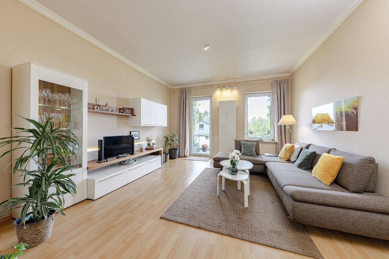 lichtdurchlutetes Wohnzimmer mit Balkon