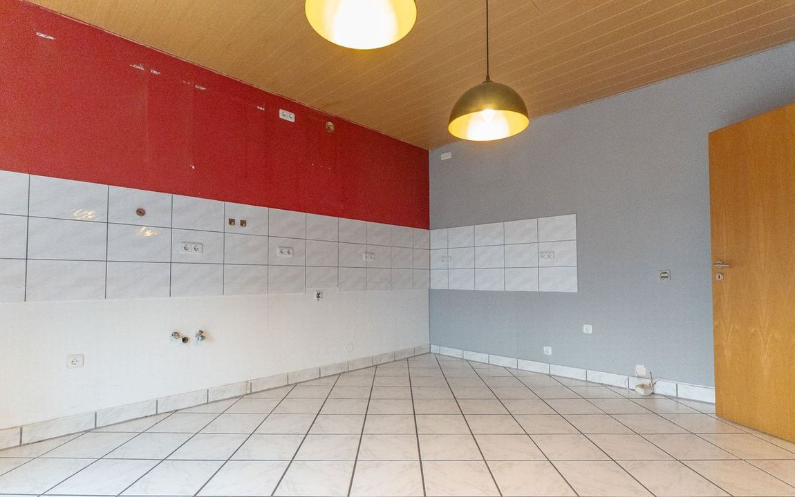 Rechts angrenzend liegt die geräumige Küche mit Platz für eine Küchenzeile sowie einen Essbereich. Von hier aus besteht Zugang zum Balkon mit Südausrichtung.