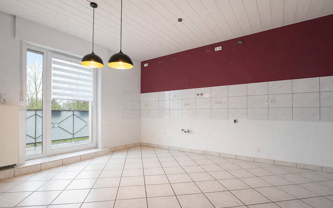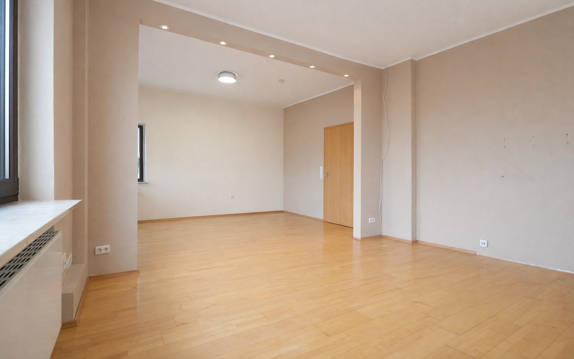Ebenfalls von der Diele aus erreichbar ist der Wohn-/ und Essbereich, der sich rechts neben der Küche befindet. Der Raum bietet ausreichend Stellfläche für eine geräumige Wohnlandschaft sowie einen separaten Essbereich.