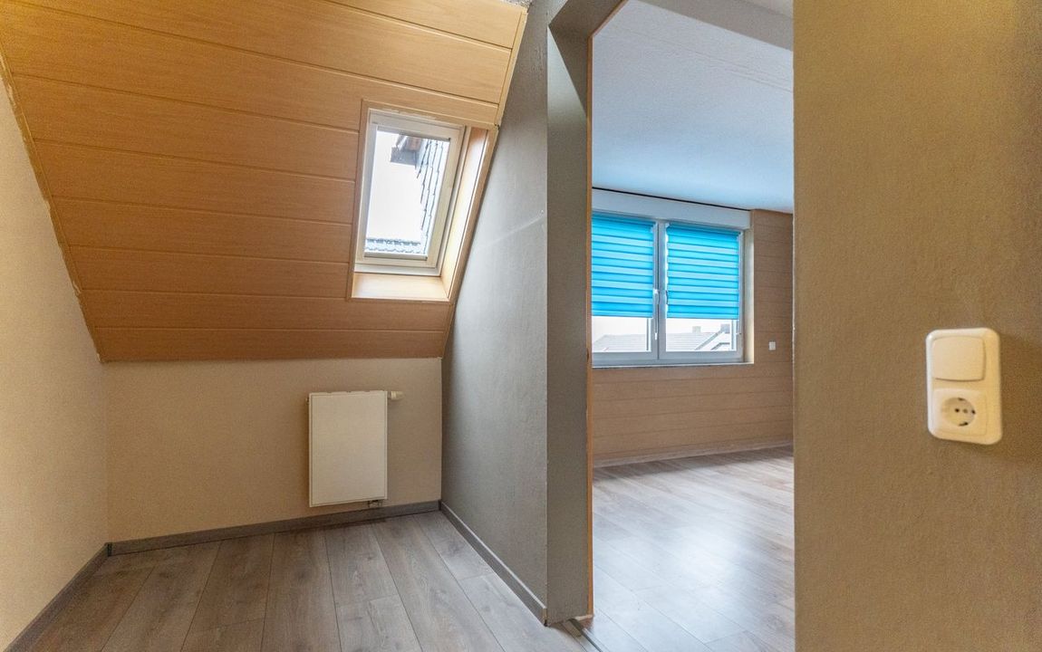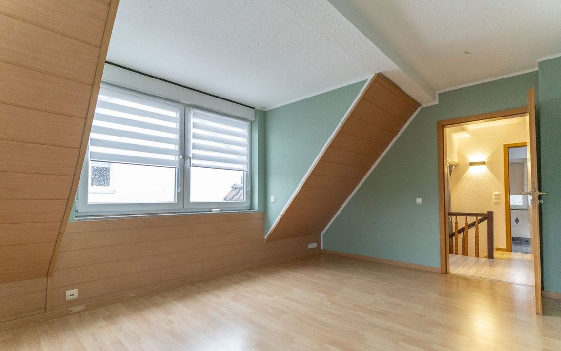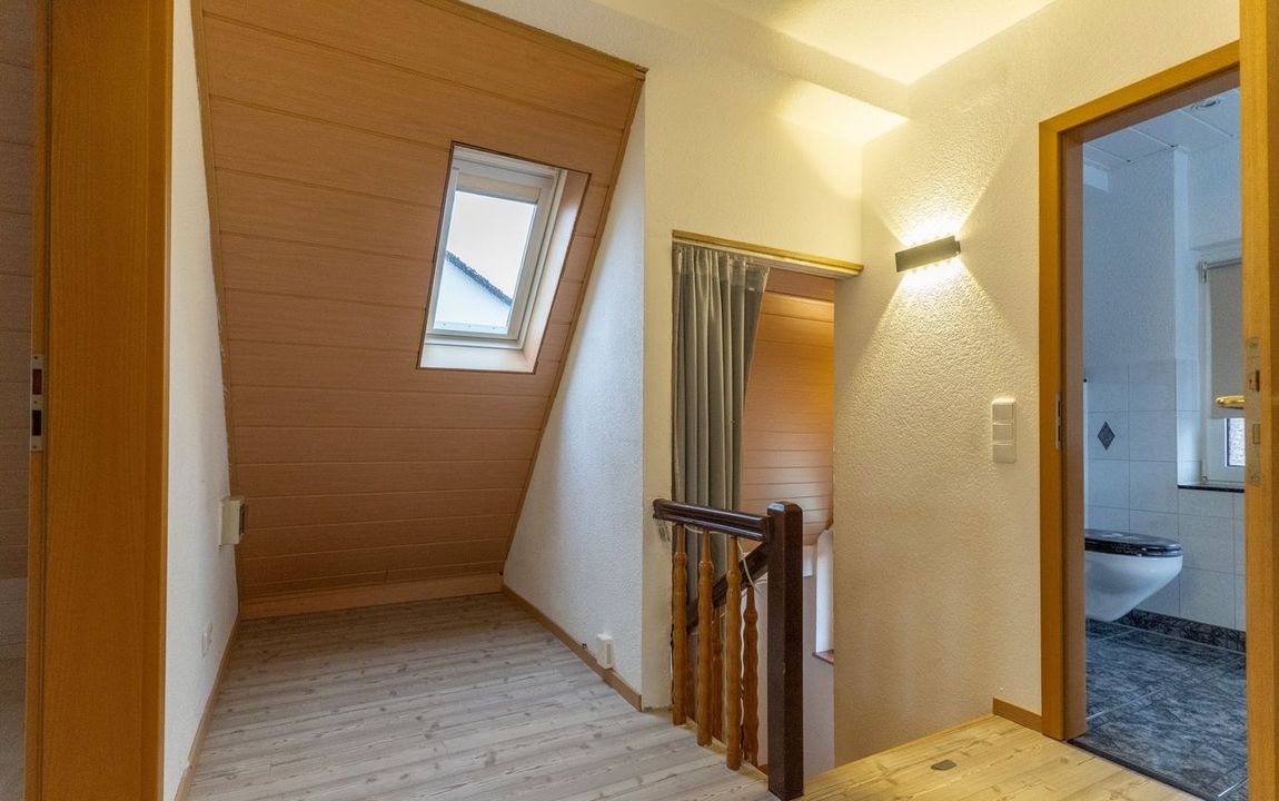 Über die Treppe im Eingangsbereich gelangen Sie in das 2. Obergeschoss. Die Diele auf dieser Ebene bietet Platz für einen kleinen Arbeitsbereich und erschließt alle weiteren Räume sowie den Zugang zum Spitzboden, der zusätzliche Abstellfläche zur Verfügung stellt.