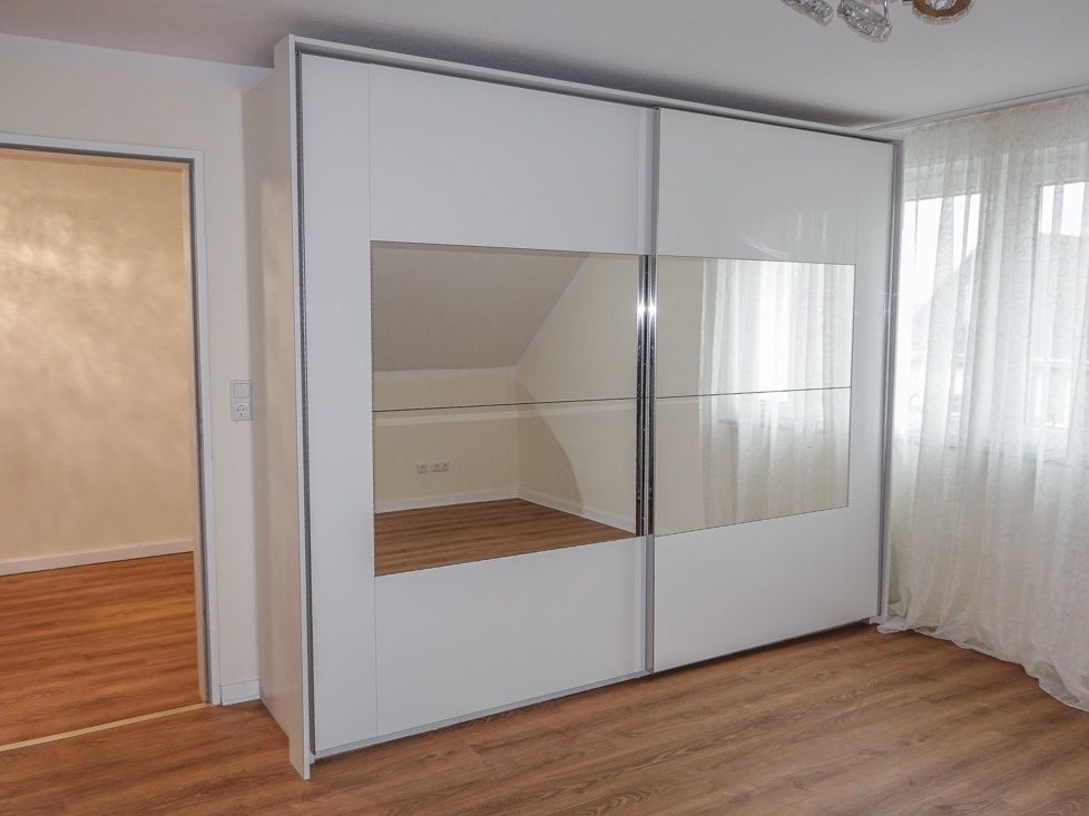 Sie betreten die Wohnung und gelangen in eine großzügige zentrale Diele, über die alle Räume dieser Wohnung erreichbar sind. Direkt rechts befindet sich das modern ausgestattete Tageslichtbad mit Dusche. Auf der linken Dielenseite liegt die Küche und das Schlafzimmer. Obwohl sich die Wohnung im Dachgeschoss befindet, schränkt Sie die Dachschräge beim Einrichten des Schlafzimmers nicht ein. Unterhalb der Dachschrägen können Sie ein Doppelbett stellen, auf der gegenüberliegenden Wand ohne Schräge befindet sich bereits ein moderner Kleiderschrank mit Glasschiebetüren. Die vorhandene Einbauküche mit modernen, zeitlosen Fronten ist mit einer Spülmaschine, einem Induktionskochfeld, Backofen und einem Kühl-/ Gefrierschrank ausgestattet. Zudem befindet sich in der Küche auch der Waschmaschinenanschluss.