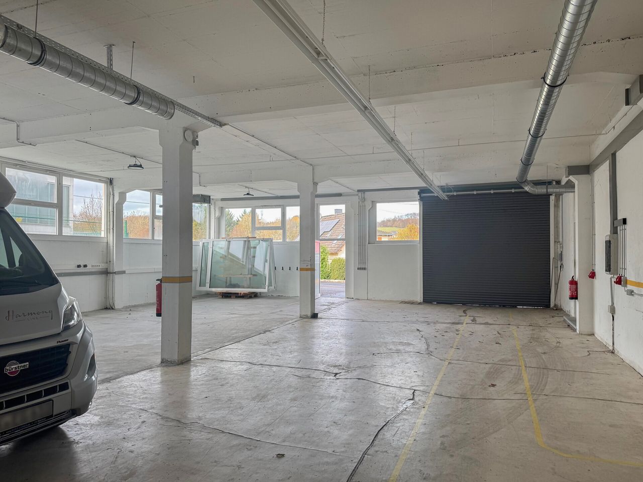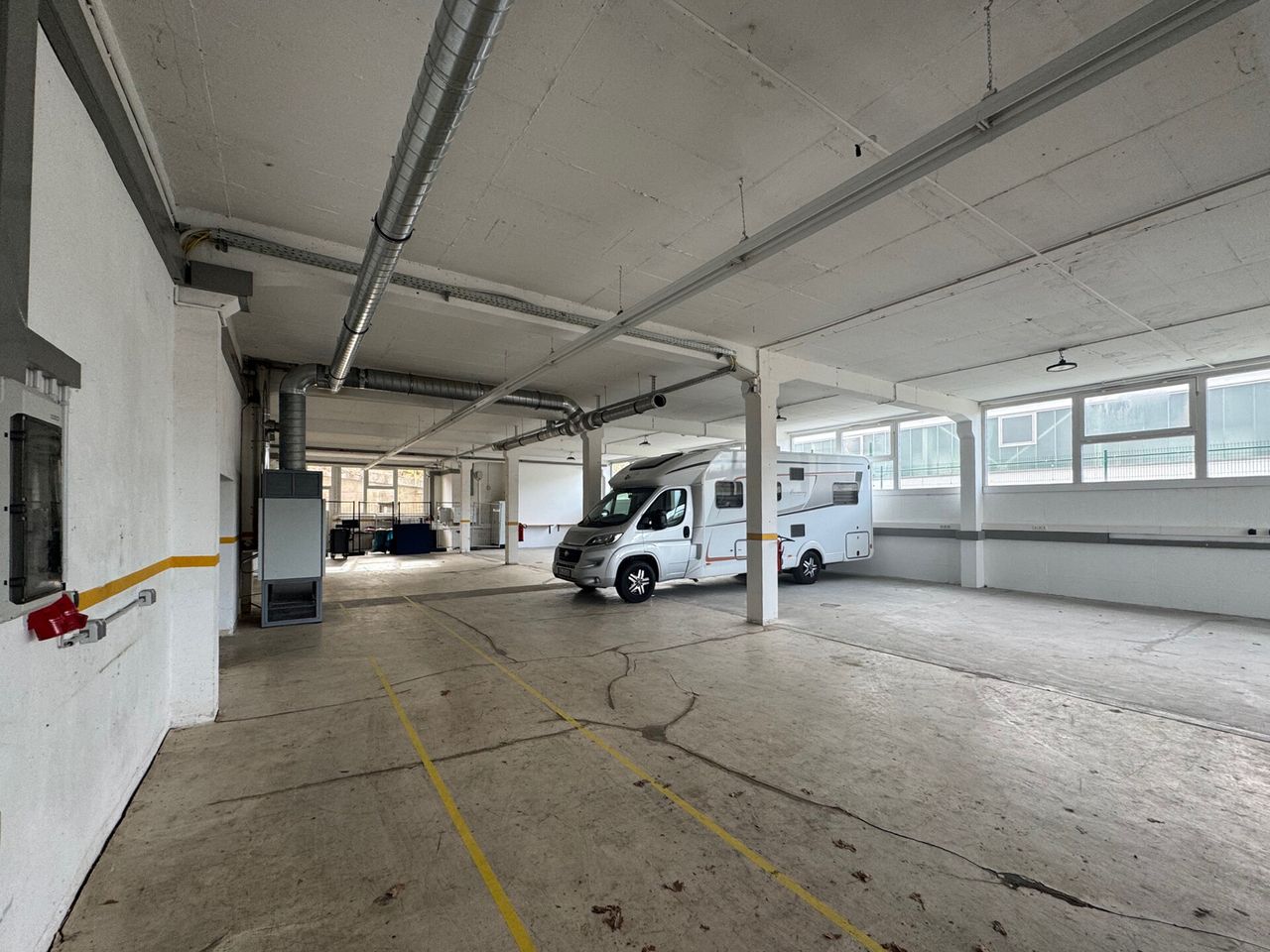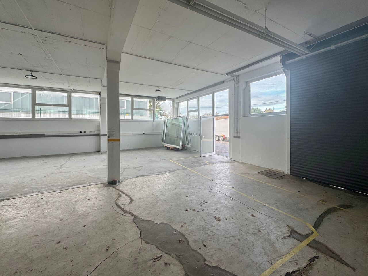 Die Halle verfügt über eine gute Belichtung und ist für verschiedene Nutzungsarten geeignet – von Produktion über Montage bis hin zur Lagerhaltung.