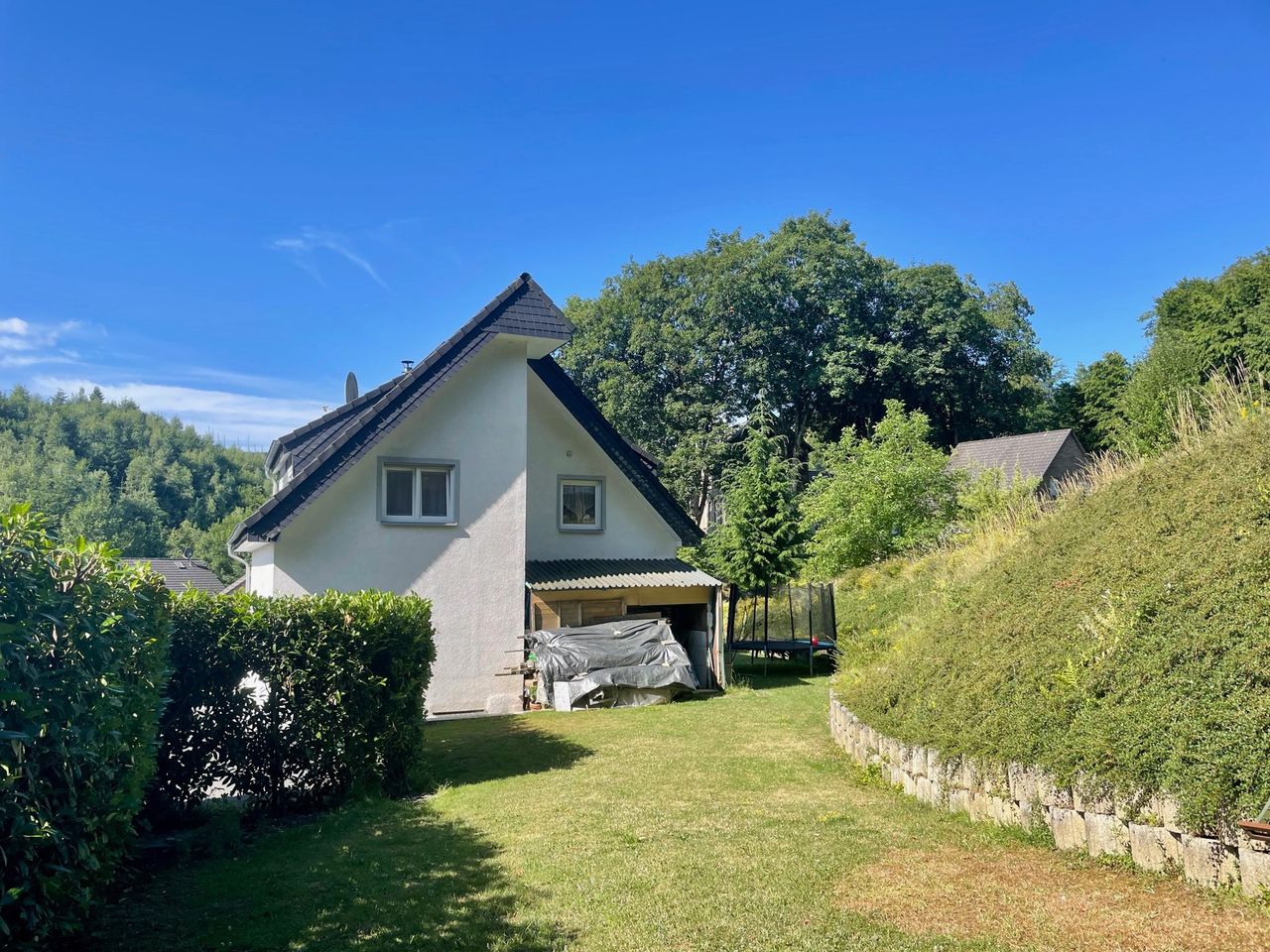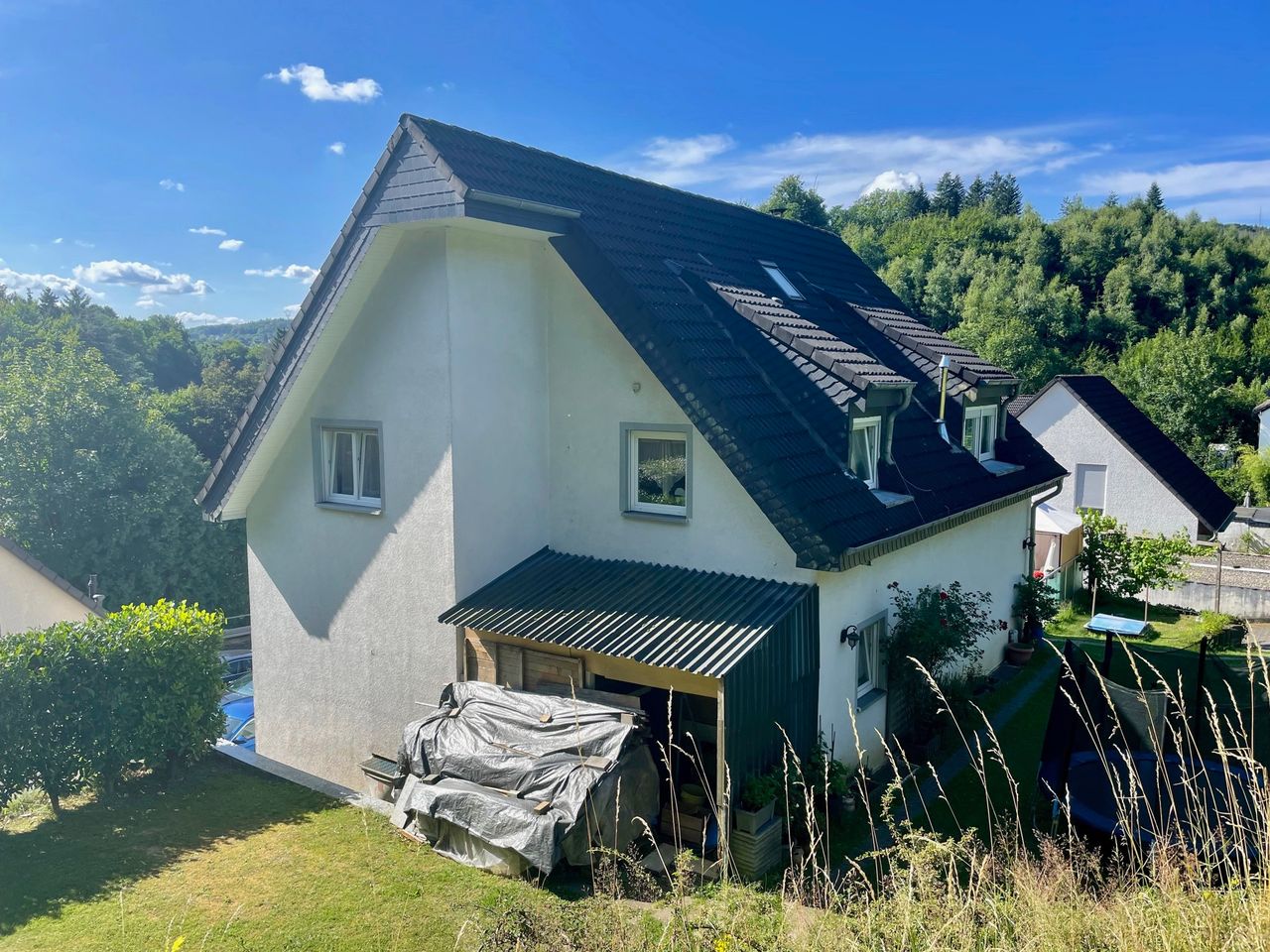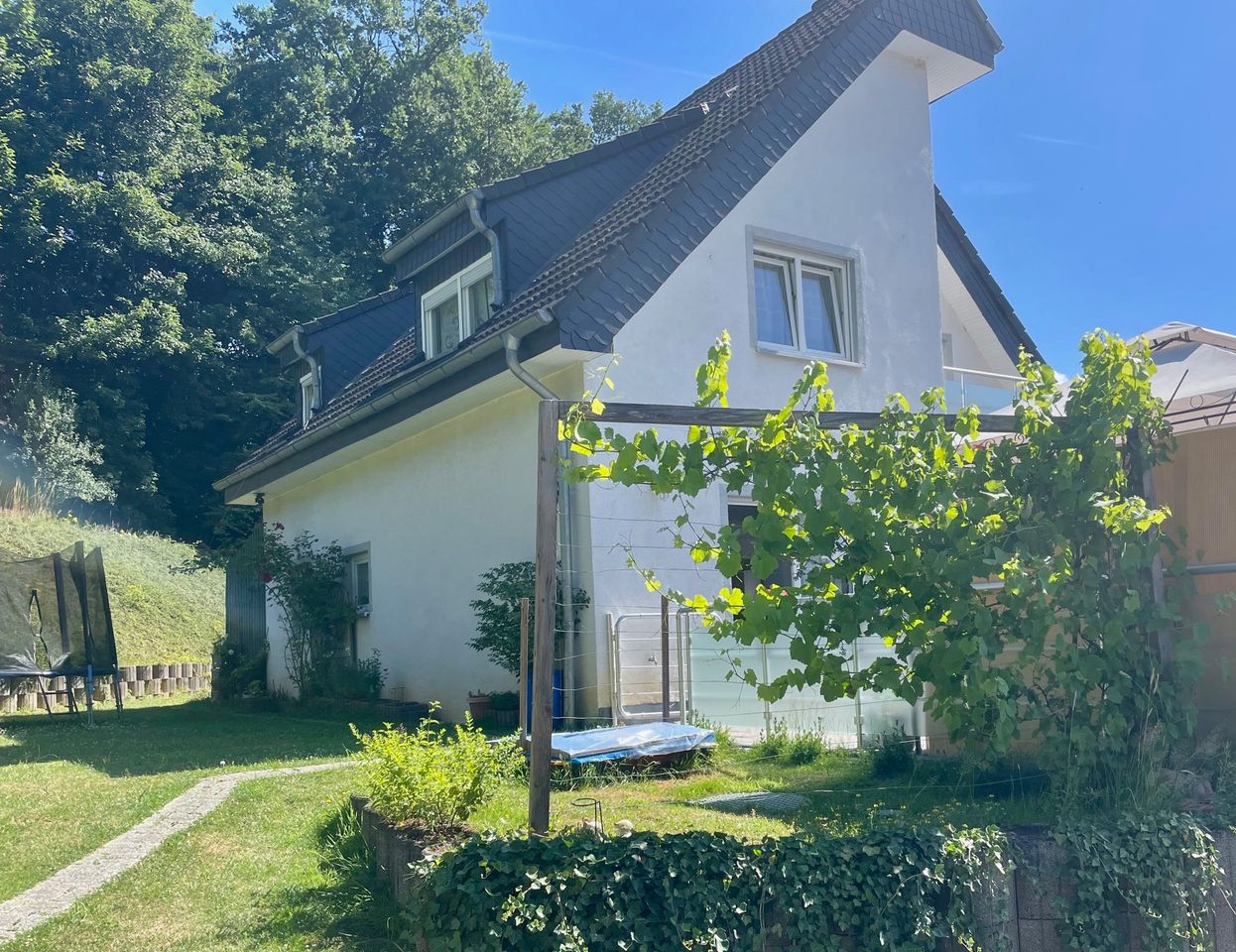 Hier können Kinder ungestört auf der Straße spielen! Dieses Einfamilienhaus mit Einliegerwohnung befindet sich am Ende einer Sackgasse. Es wurde im Jahr 2004 auf einem ca. 657 m² großen Grundstück erbaut und verfügt über eine Wohnfläche von insgesamt ca. 210 m². Der Eingangsbereich der ca. 162 m² großen Hauptwohnung liegt im Untergeschoss. Über eine Treppe erreichen Sie den modernen Wohn-/Essbereich der Immobilie. Auf der gleichen Ebene befinden sich die Küche, ein Abstellraum, ein Bad mit Dusche sowie ein weiteres Zimmer. Das Obergeschoss verfügt über drei Schlafzimmer und ein Badezimmer mit Eckwanne.