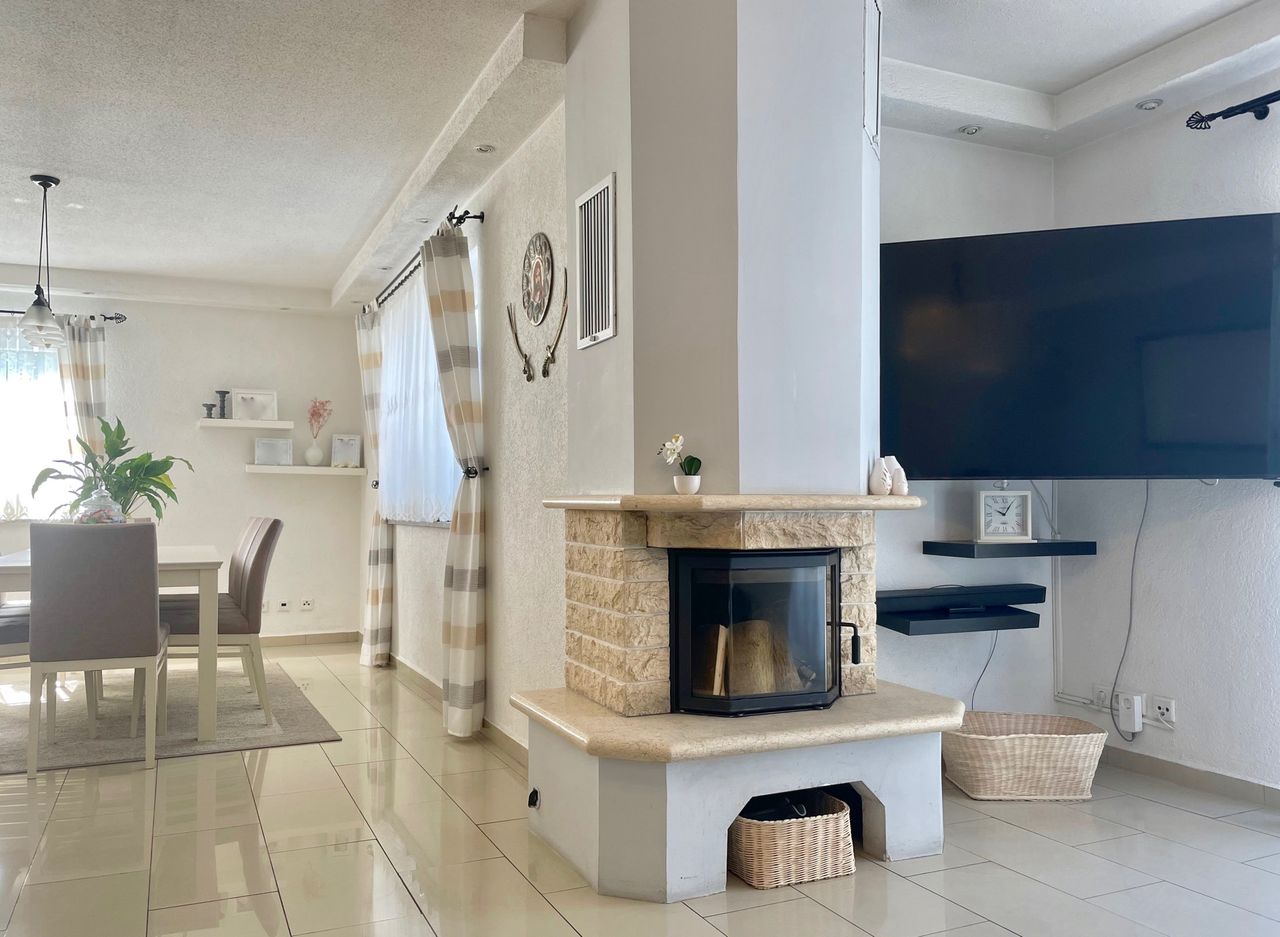 offener Wohnbereich mit Kamin