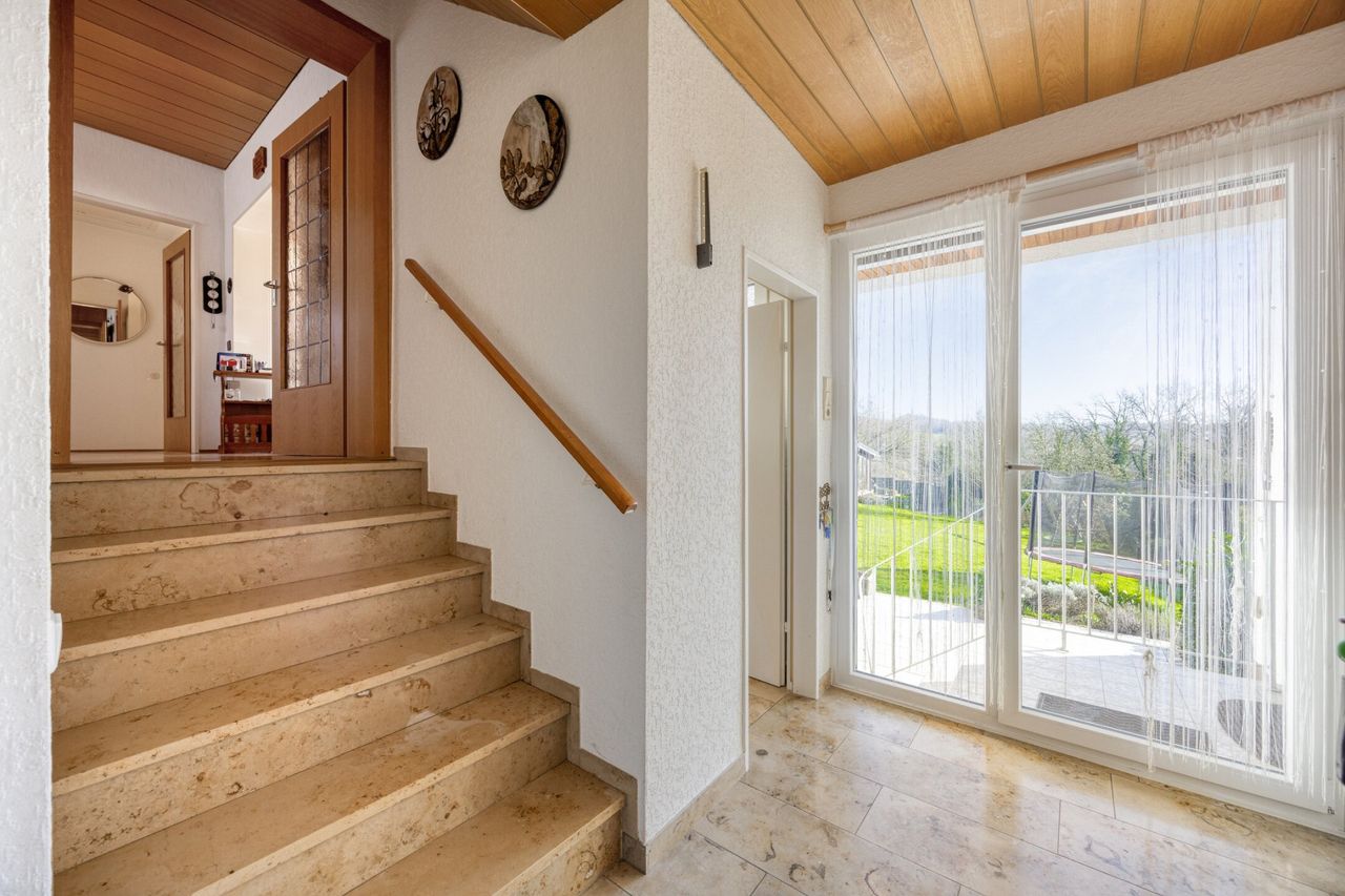Am Ende einer ruhigen Sackgasse, in attraktiver Feldrandlage, erwartet Sie dieses großzügige Wohnhaus mit unverbaubarem Blick ins Grüne. Ursprünglich im Jahr 1969 errichtet und 1987 durch einen Erweiterungsbau ergänzt, ist im Laufe der Zeit ein Zuhause mit vielseitigen Nutzungsmöglichkeiten entstanden.