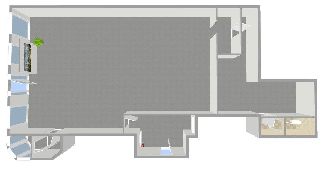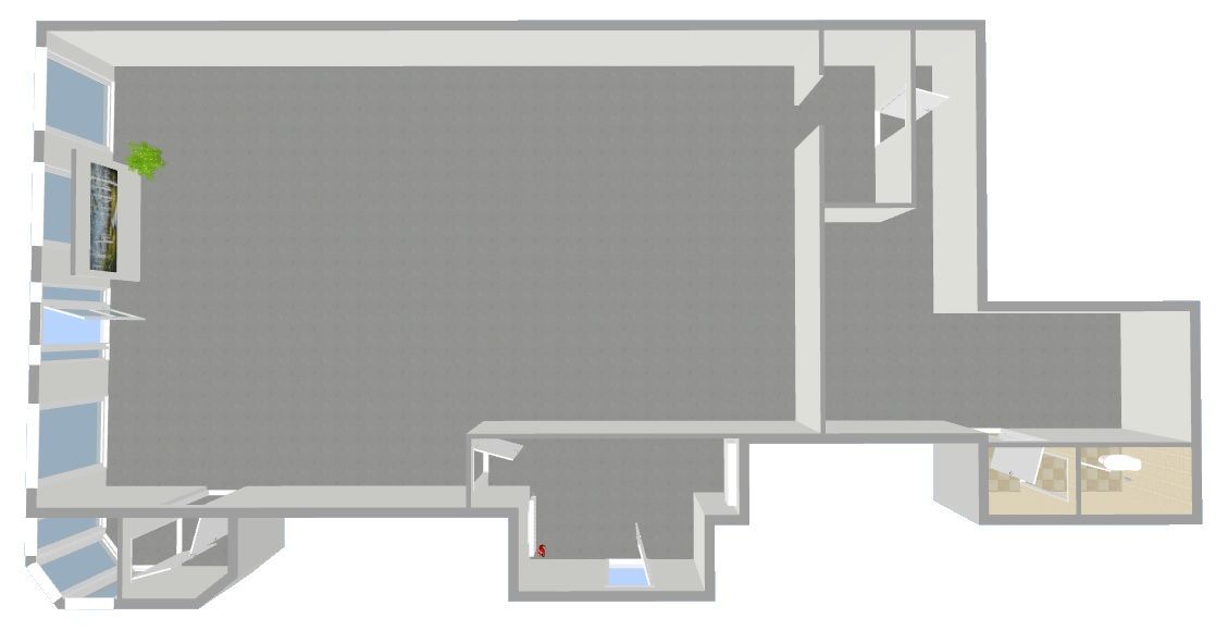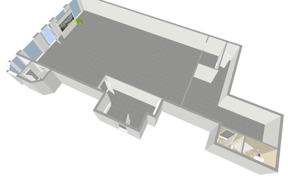 Die derzeitige Aufteilung sieht eine großzügige Hauptfläche mit insgesamt ca. 130 m² vor zusätzliche drei Nebenräume ermöglichen direkt zugängliche Lager- und Archivmöglichkeiten. Die Sanitäranlagen befinden sich ebenfalls im hinteren Bereich der Erdgeschossfläche.