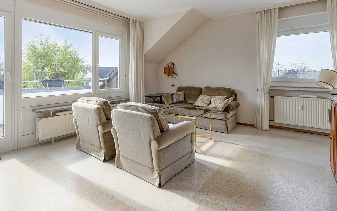 Diese gemütliche ca. 65 m² große Wohnung liegt im Dachgeschoss eines äußerst gepflegten Mehrfamilienhauses aus dem Jahre 1973 mit nur sechs Parteien.