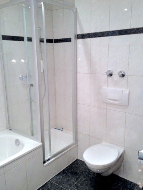 Das modern gestaltete Badezimmer ist sowohl mit einer Badewanne als auch einer Dusche ausgestattet und begeistert ebenso wie das separate Gäste-WC mit hochwertigen Materialien und edlen Granitelementen. Hier zeigt sich Liebe zum Detail in jeder Ecke.
