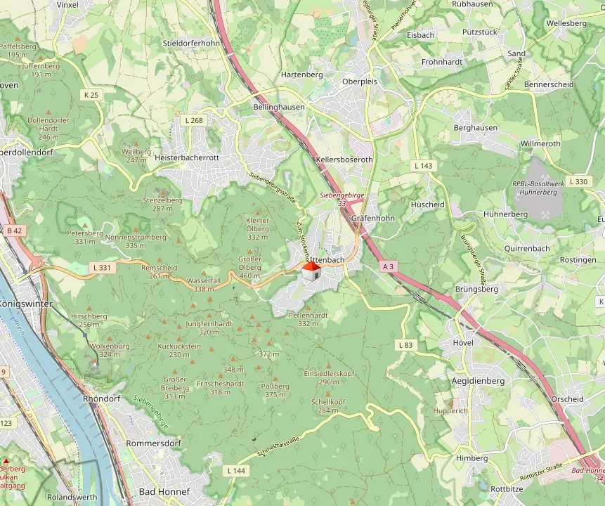 Auch die Anbindung an den öffentlichen Nahverkehr ist ideal. Bushaltestellen sind fußläufig erreichbar, der Bahnhof Königswinter lässt sich schnell erreichen, und die Autobahnen A3 und A59 ermöglichen eine komfortable Anbindung an Bonn, Köln und das Umland.
