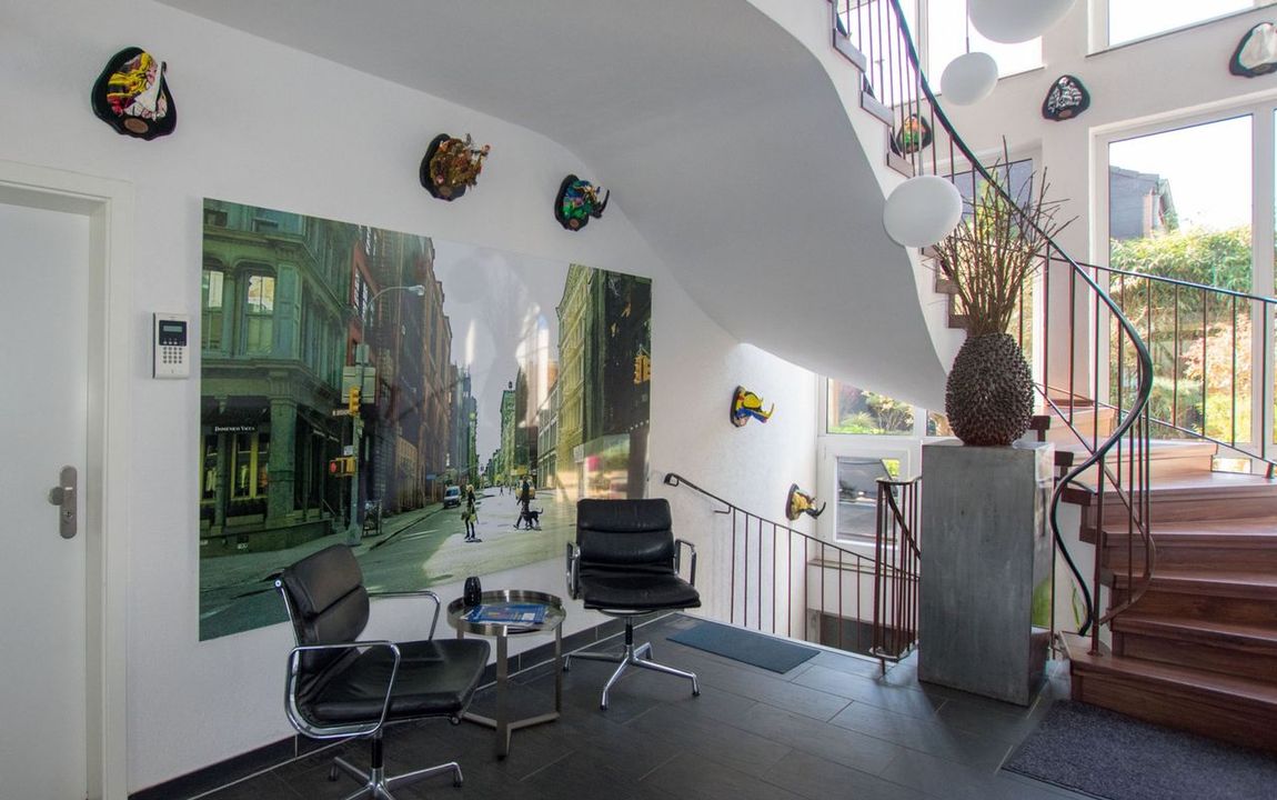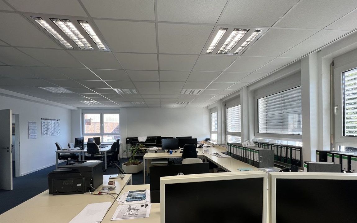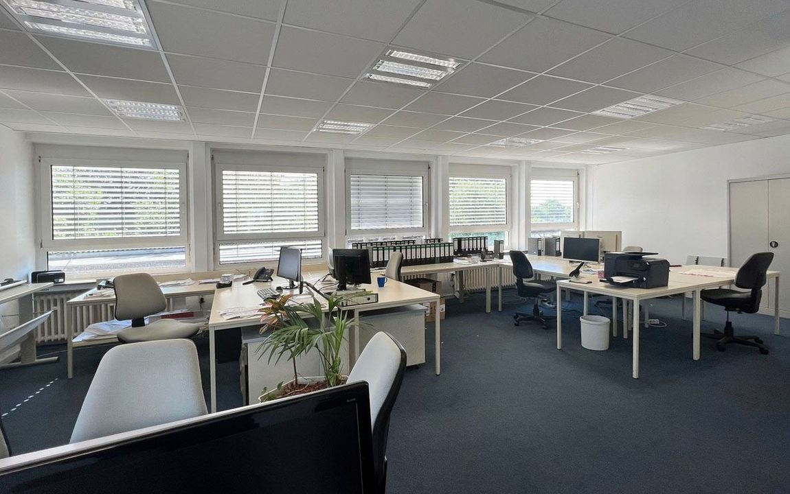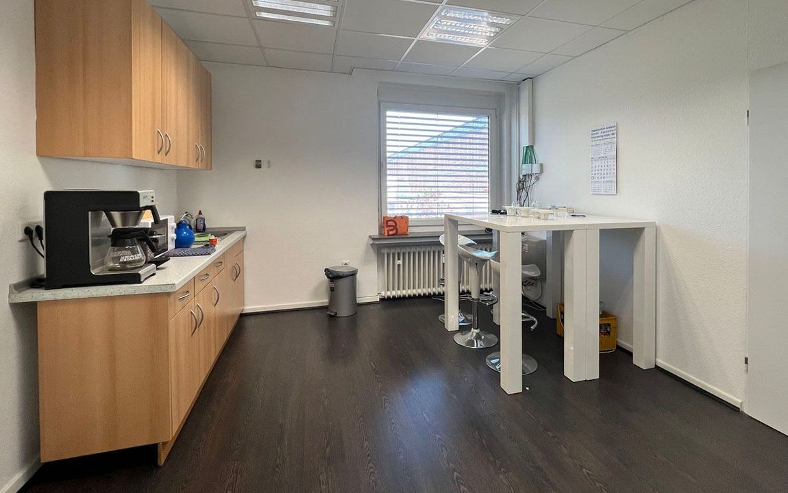 Die Bürofläche befindet sich im 1. Obergeschoss und besteht aus einem großen sowie zwei kleineren Büroräumen. Die separate Teeküche wird mit dem Nachbarmieter geteilt. Ein Aufzug ist nicht vorhanden.