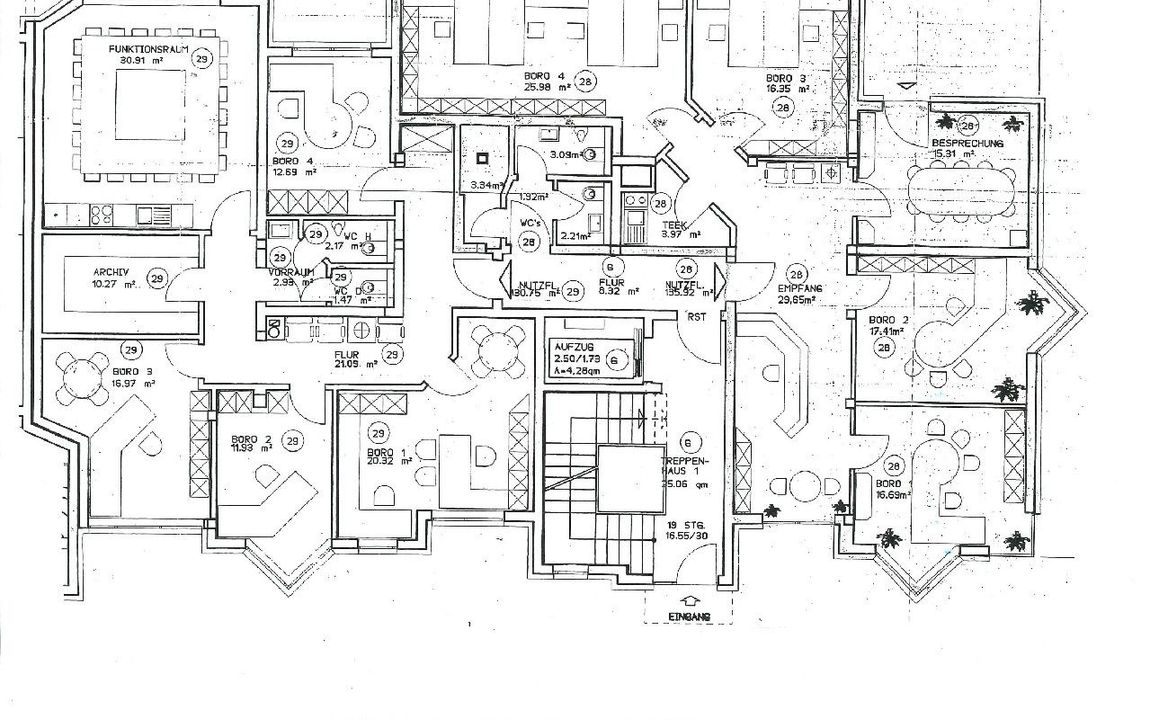 Moderne und helle Ausstattung mit barrierefreien Eingang zu den Büroflächen. Kfz.-Außenstellplätze für Besucher.