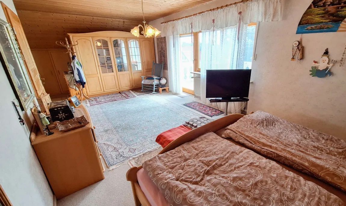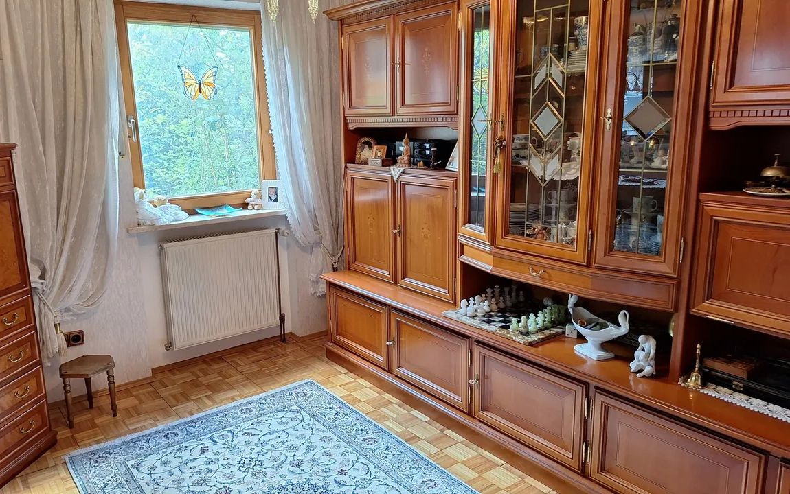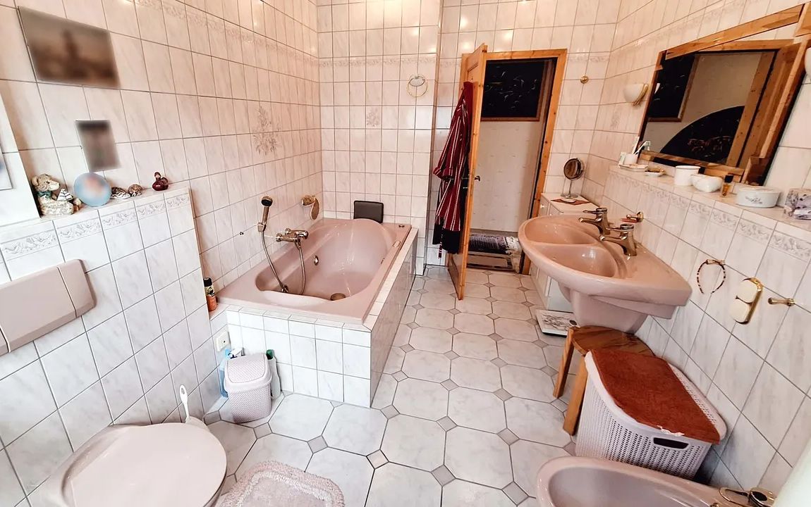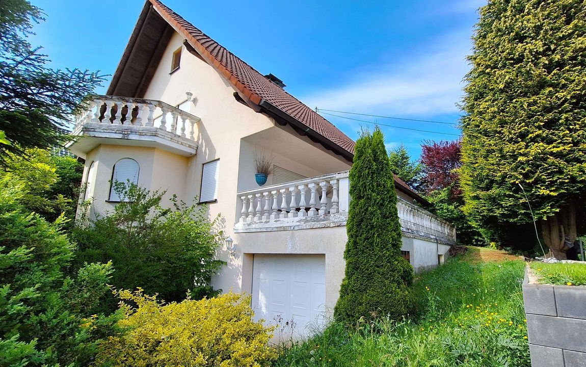 Im Obergeschoss befinden sich zwei Schlafzimmer, ein Badezimmer sowie ein Balkon. Der ausgebaute Spitzboden bietet zwei weitere, vielseitig nutzbare Zimmer. Der ebenerdig gelegene Keller überzeugt mit direktem Zugang zur Garage, einer Waschküche mit integrierter Sauna, zwei beheizten, ausgebauten Zimmern sowie einem praktischen Hauswirtschaftsraum. Das Wohnzimmer des Kellergeschosses verfügt über einen gemütlichen Kachelofen. Ein ideales Zuhause für Familien mit Platzbedarf!