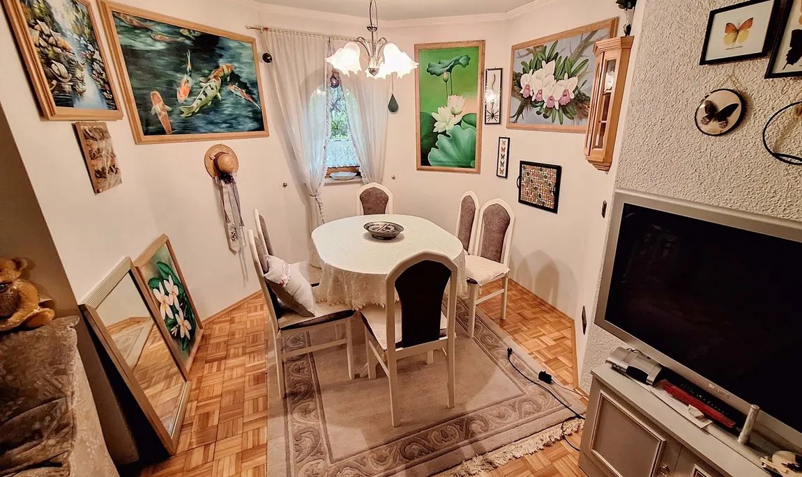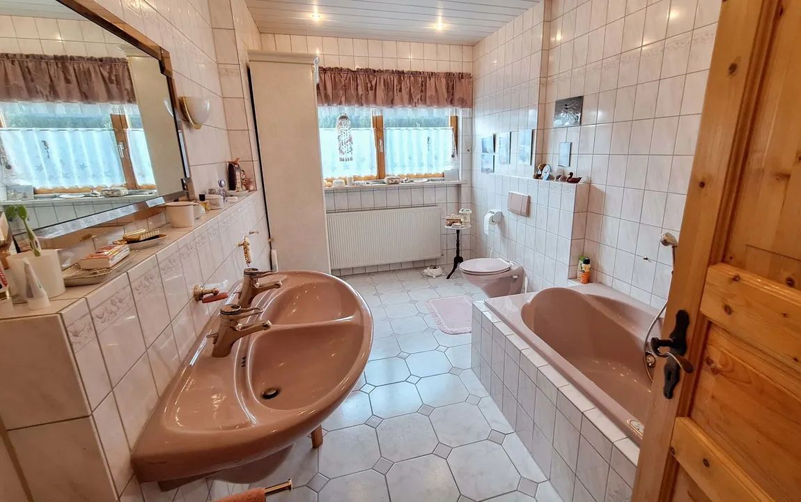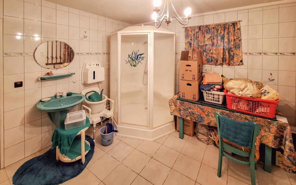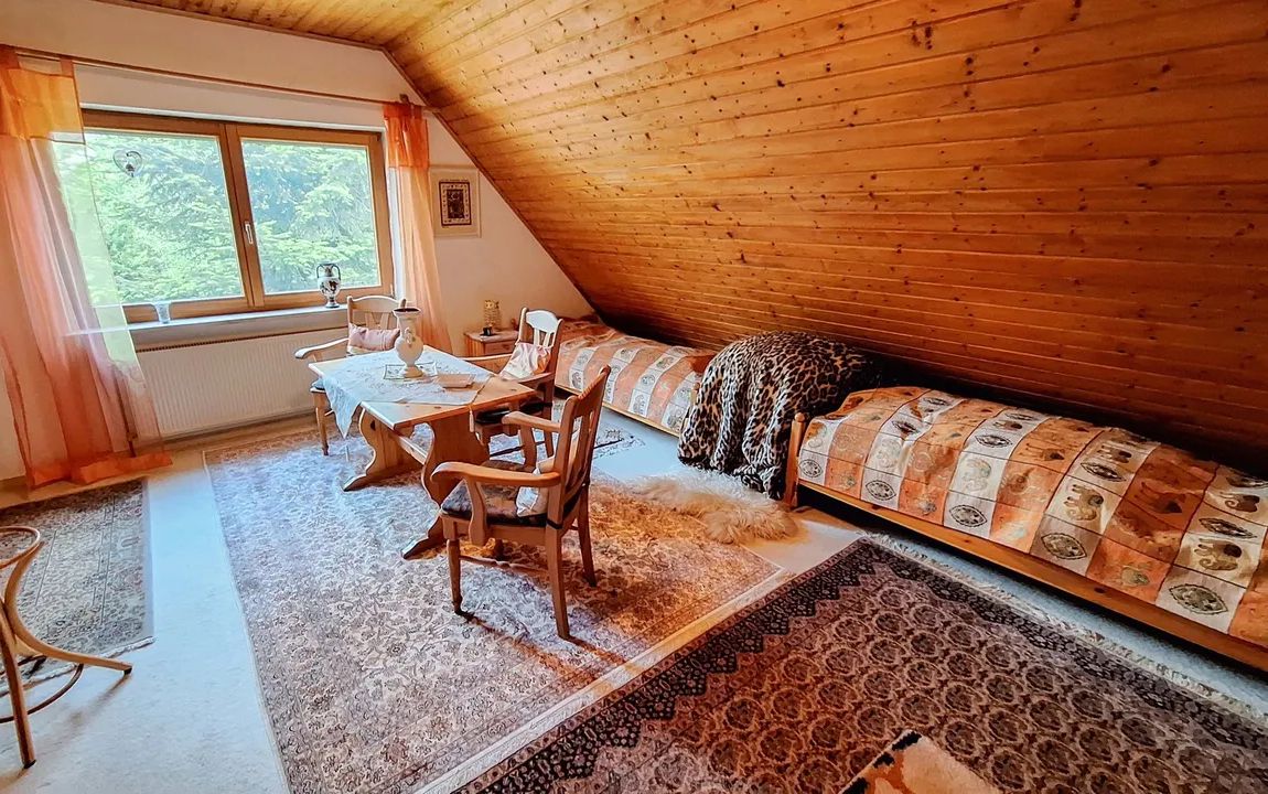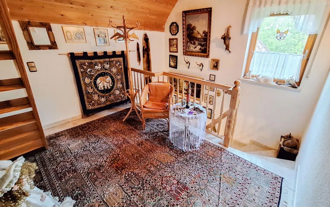 Im Obergeschoss befinden sich zwei Schlafzimmer, ein Badezimmer sowie ein Balkon. Der ausgebaute Spitzboden bietet zwei weitere, vielseitig nutzbare Zimmer. Der ebenerdig gelegene Keller überzeugt mit direktem Zugang zur Garage, einer Waschküche mit integrierter Sauna, zwei beheizten, ausgebauten Zimmern sowie einem praktischen Hauswirtschaftsraum. Das Wohnzimmer des Kellergeschosses verfügt über einen gemütlichen Kachelofen. Ein ideales Zuhause für Familien mit Platzbedarf!