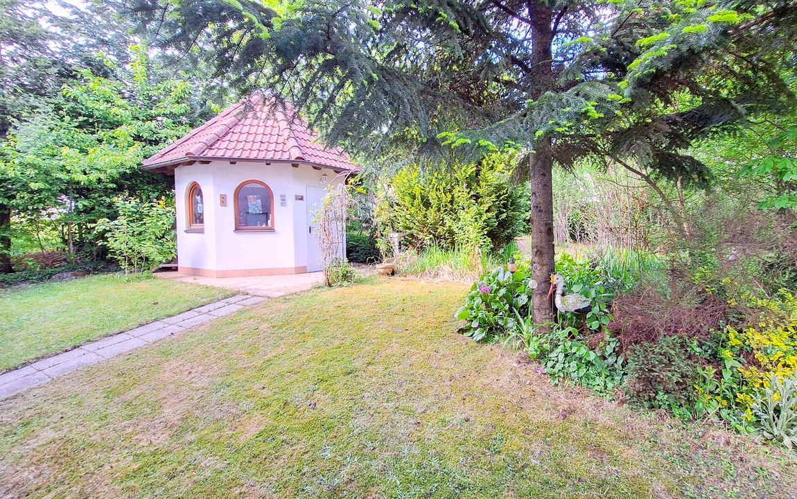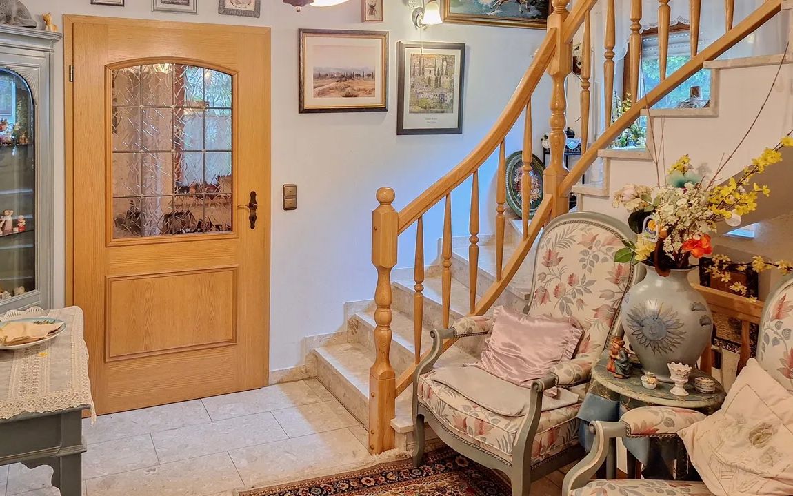 Im Erdgeschoss gelangen Sie über den Windfang in den Flur, von dem aus sich Küche und das großzügige Wohn- und Esszimmer mit Erker erschließen. Beide Räume bieten Zugang zur sonnigen Terrasse – ideal für entspannte Stunden im Freien. Der gepflegte Garten mit Pavillon und Gartenhaus lädt zum Verweilen ein.