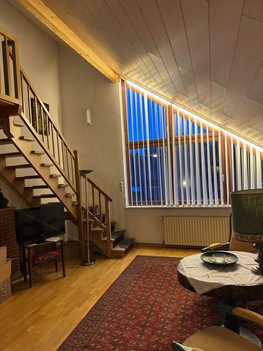 Atelierraum, Küche, Duschbad und Galerie Empore über integrierte Treppe