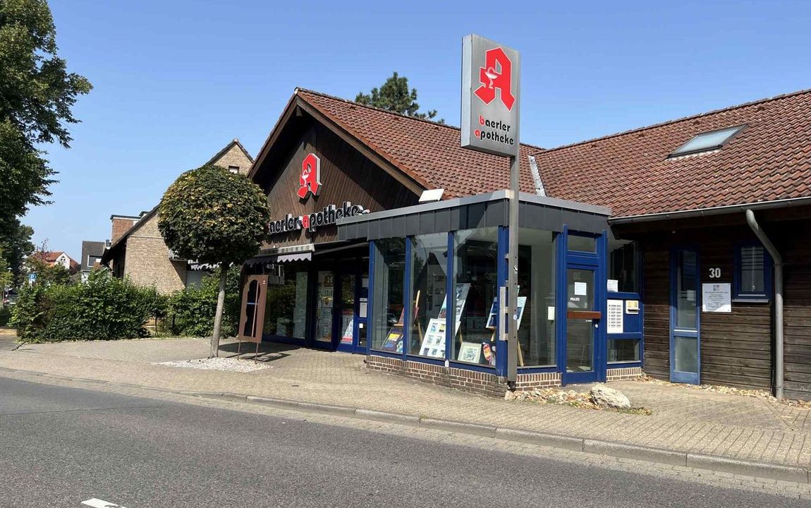 Die einzige Apotheke von Baerl liegt inmitten des linksrheinischen Duisburger Ortsteils an der Durchgangsstraße, die von Moers bzw. der Autobahnabfahrt DU-Baerl/Du-Homberg über Baerl in Richtung Rheinberg führt. Daher ist das Einzugsgebiet der Apotheke deutlich über die reine Einwohnerzahl Baerls hinaus zu sehen. Direkt angrenzend befindet sich eine gutgehende Praxis für Allgemeinmedizin.