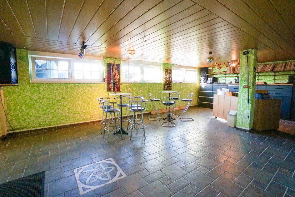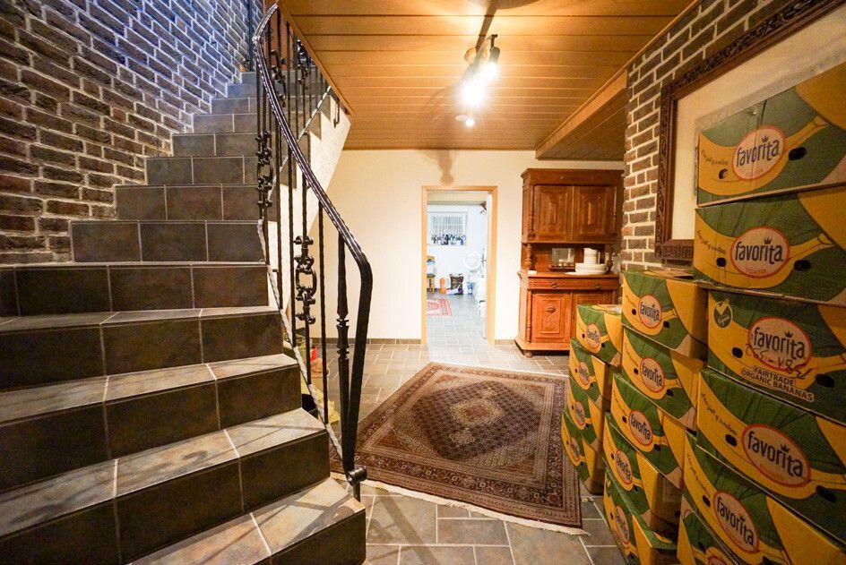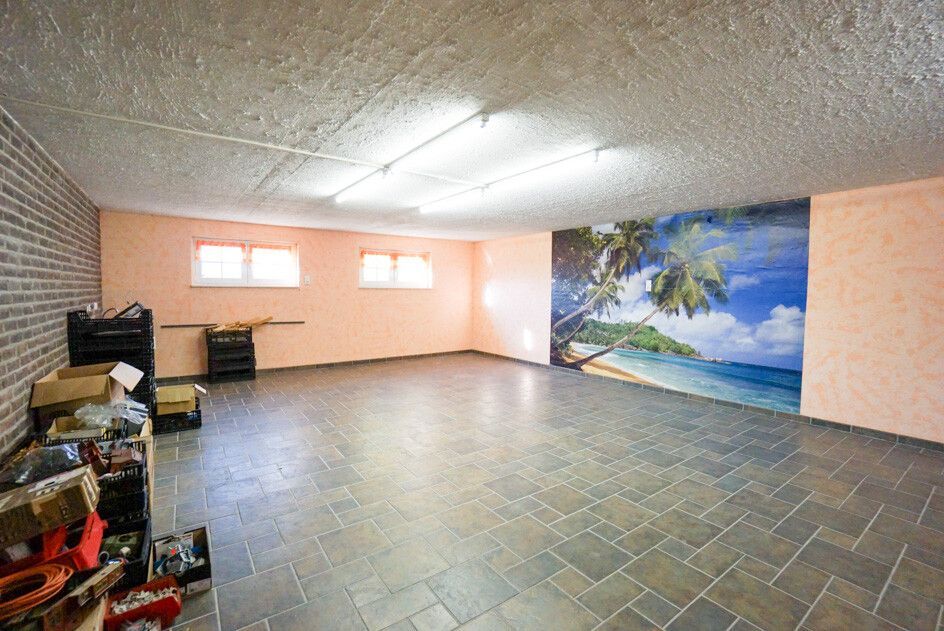 Darüber hinaus erschließt der Flur den Keller mit weiteren fünf wohnlichen Räumen mit Fenstern und Fußbodenheizung, Hauswirtschaftsraum, Sauna und Heizungsanlage sowie Ausgang zum Garten – insgesamt über ca. 240 qm.