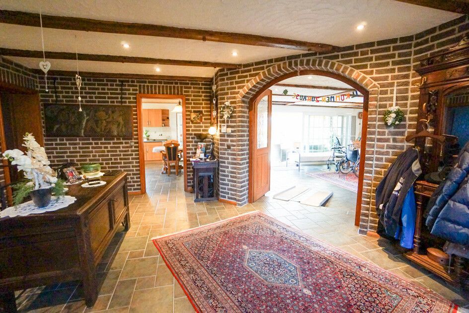Das Haus selbst bietet im Erdgeschoss eine sehr großzügig gestaltete Wohnung von rund 145 qm mit einem Schlafzimmer, angrenzendem Wannen- und Duschbad, einer großen Wohnküche mit direktem Zugang zur Terrasse und einem außergewöhnlich großen Wohnzimmer nebst gemauertem Kamin.