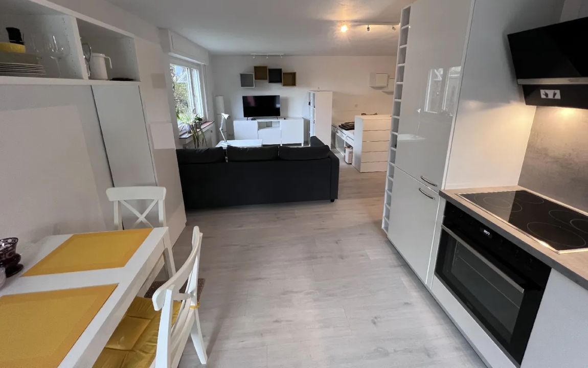 Die im Jahr 2021 fertiggestellte Wohnung ist vollständig möbliert und somit direkt bezugsbereit. Sofa, Bett, Schrank, Regale und Esstisch sind bereits vorhanden. Die integrierte Küchenzeile fügt sich harmonisch in das Wohnkonzept ein. Helles Laminat sowie, weiße Wände verleihen den Räumen eine moderne und freundliche Atmosphäre.