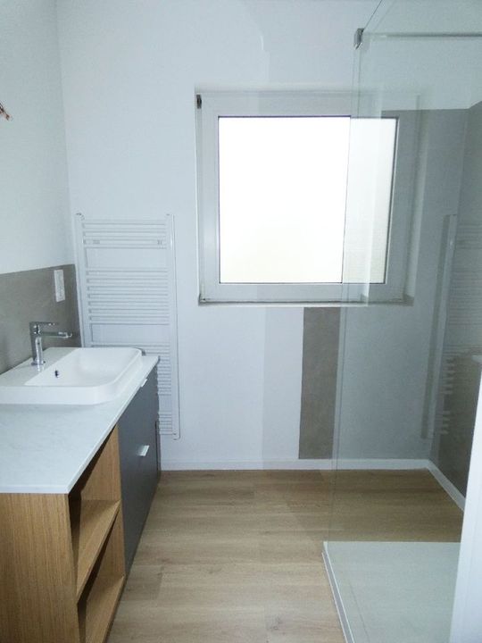 Das modernisierte Duschbad ist mit einer flachen Duschtasse sowie einem Tageslichtfenster ausgestattet und bietet zeitgemäßen Komfort. Ergänzt wird das Raumangebot durch ein separates, ebenfalls modernisiertes WC.