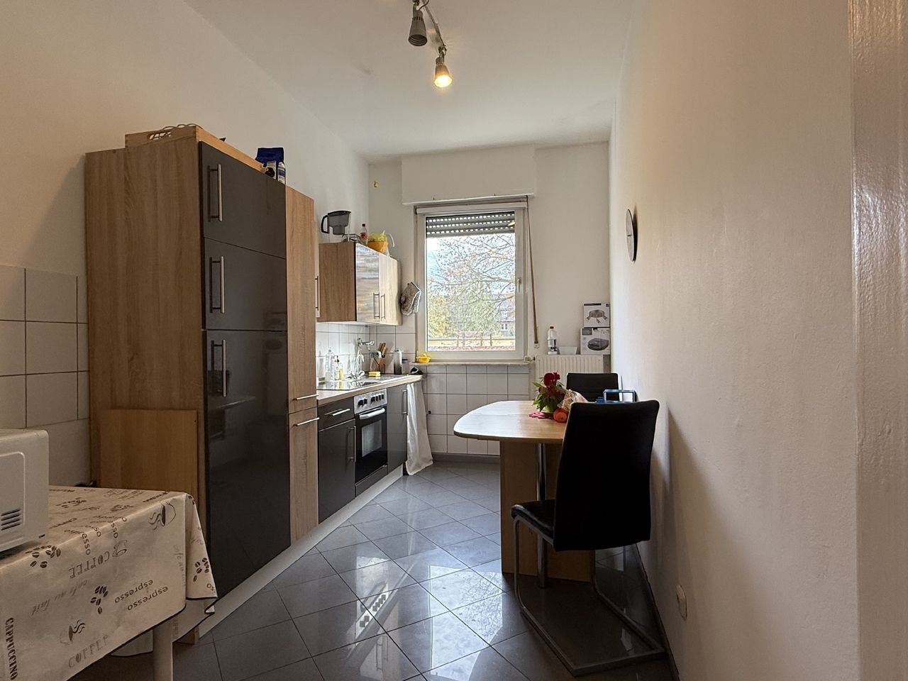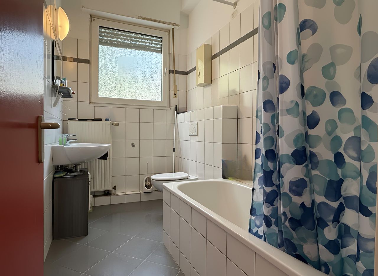 Das Wohnzimmer überzeugt durch seine angenehme Größe und den direkten Zugang zum Balkon. Große Fenster- bzw. Türelemente sorgen für viel Tageslicht und schaffen eine freundliche Wohnatmosphäre. Der Raum bietet ausreichend Platz für eine gemütliche Sofalandschaft sowie einen Essbereich oder eine kleine Homeoffice-Lösung. Die separate Küche ist funktional geschnitten und bietet genügend Platz für eine Einbauküche sowie einen kleinen Essplatz am Fenster. Die helle Gestaltung und die praktische Aufteilung ermöglichen komfortables Arbeiten. Das Schlafzimmer ist ruhig gelegen und bietet ausreichend Stellfläche für ein Doppelbett sowie einen Kleiderschrank. Durch die großen Fenster wirkt der Raum hell und freundlich. Das Tageslichtbad ist klassisch weiß gefliest und mit einer Badewanne ausgestattet. Ein Fenster sorgt hier für natürliche Belüftung und angenehmes Tageslicht.