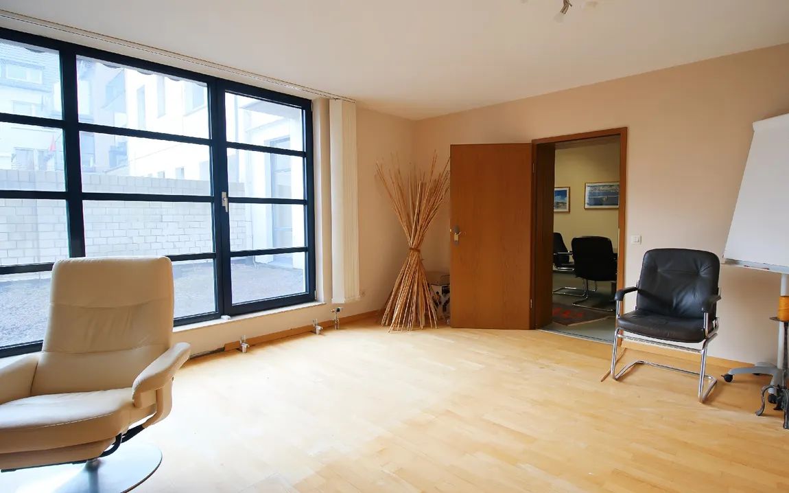 Die Büroräume befinden sich im Erdgeschoss eines Mehrfamilienhauses aus ca. 1984, das insgesamt sechs Einheiten umfasst. Auf rund 97 m² verteilen sich drei Büroräume, ein Besprechungsraum, eine Diele, eine Teeküche und eine Sanitäranlage.