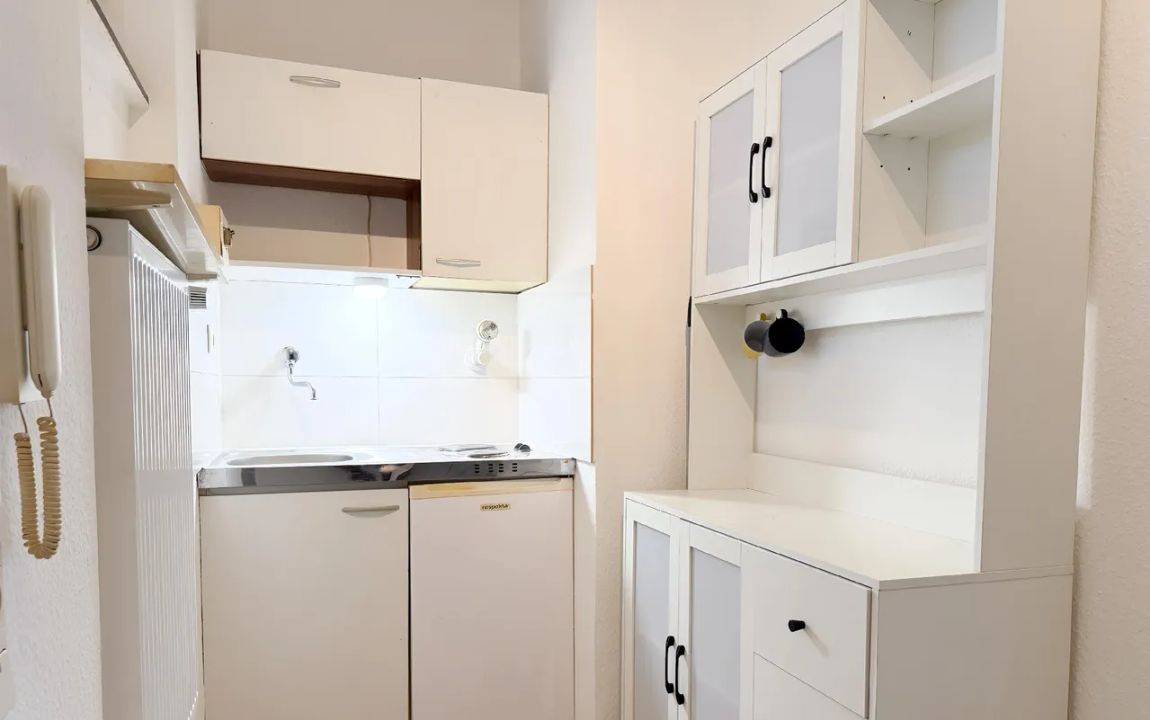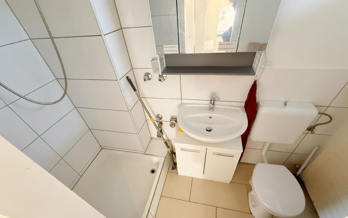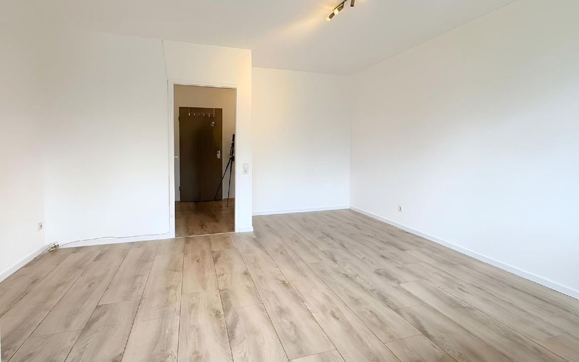 Im Erdgeschoss (Hochparterre) eines gepflegten und ruhigen Hauses ca. aus dem Jahre 1964, befindet sich dieses kleine Apartment. Alle Etagen, einschließlich des Kellers, sind bequem mit dem Aufzug zu erreichen. Auf rund 33 m² verteilen sich ein Wohn-/Schlafraum, eine große Diele mit offener Küche und ein innenliegendes Duschbad sowie ein Balkon. Zur Wohnung gehört ebenfalls ein eigener Kellerraum.