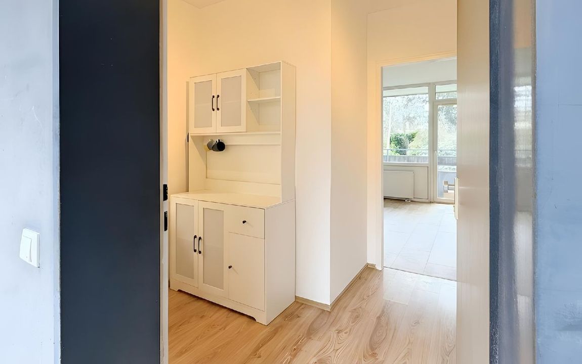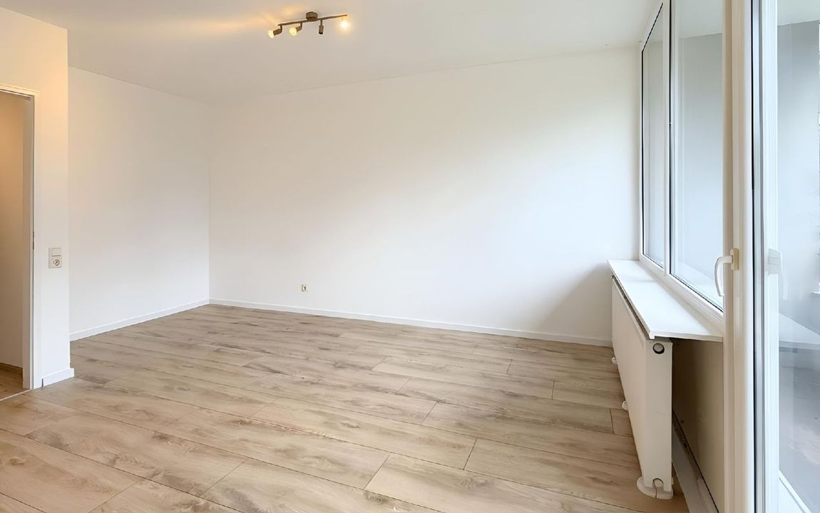 Das Highlight dieses Apartments ist die große Fensterfront, welche sich über die gesamte Breite des Wohnzimmers erstreckt, sowie der dahinter liegende, überdachte Balkon. Hierdurch ist die Wohnung schön lichtdurchflutet.