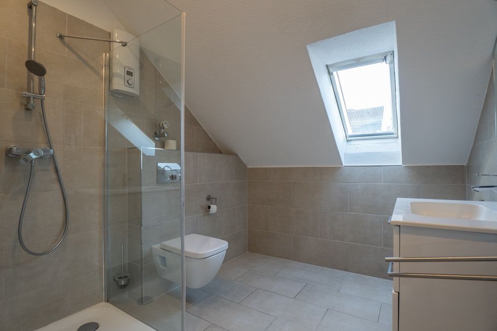 Im Rahmen der Modernisierung wurden neue isolierverglaste Kunststofffenster, in allen Räumen mit Rollläden, neue weiße Holztüren mit Edelstahlbeschlägen, ein hochwertiger Vinylboden in gekälkter Holzoptik sowie ein neu gefliestes Duschbad mit flachem Einstieg eingebaut. Neben den neuen Fenstern sorgt auch die Dach-/ und Fassadendämmung für eine sehr gute Energieeffizienz.