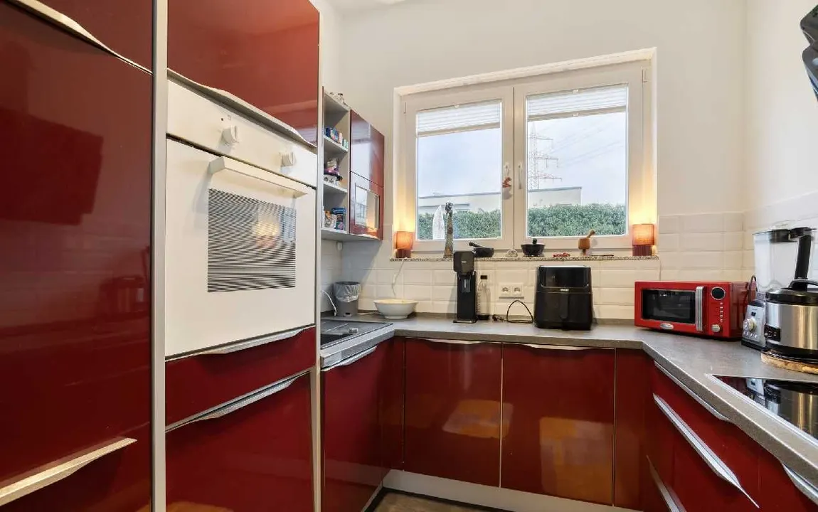 Die Einbauküche inklusive der Elektrogeräte kann von dem Käufer übernommen werden.