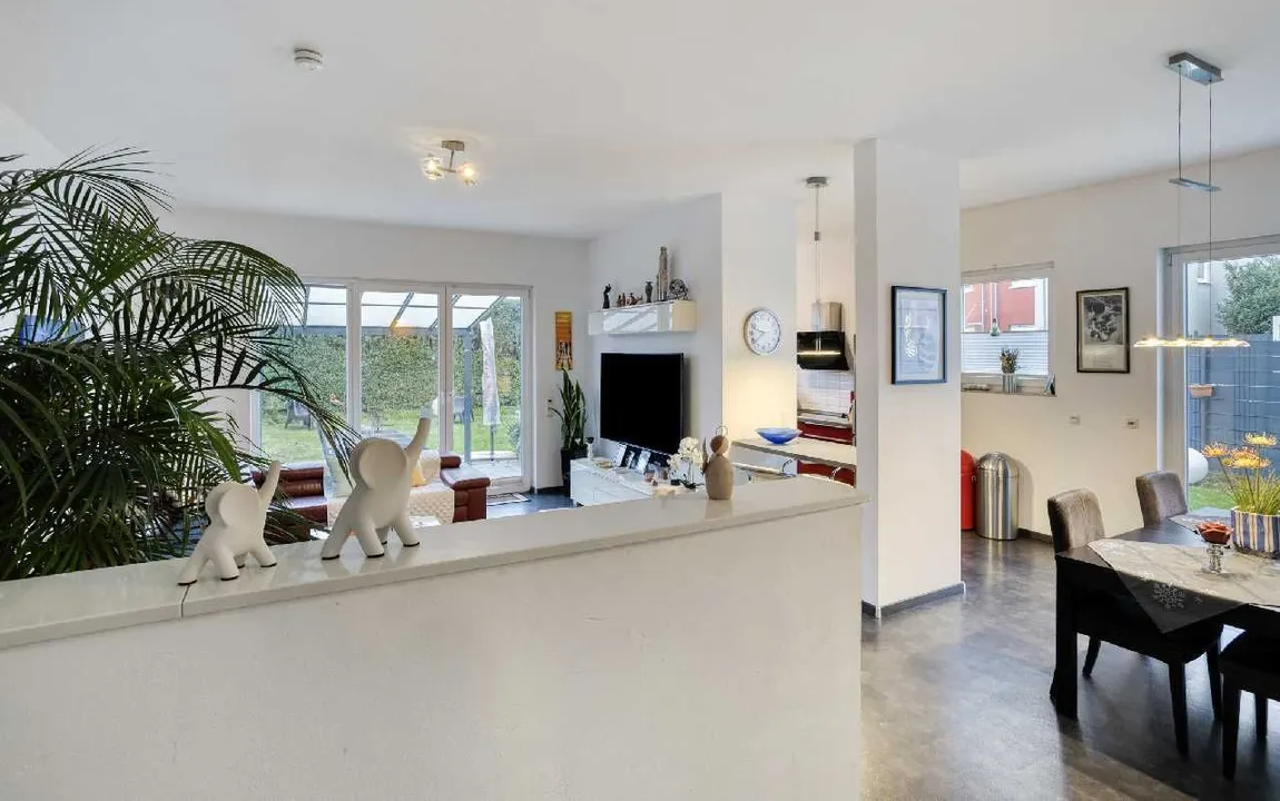 Es erwartet Sie ein großzügige und sehr moderne Doppelhaushälfte (Baujahr 2014) mit vier Schlafzimmern, einer tollen Dachterrasse, einem großen Wohn-/Esszimmer mit offener Küche und direktem Zugang zur Terrasse und dem schön angelegten Garten.