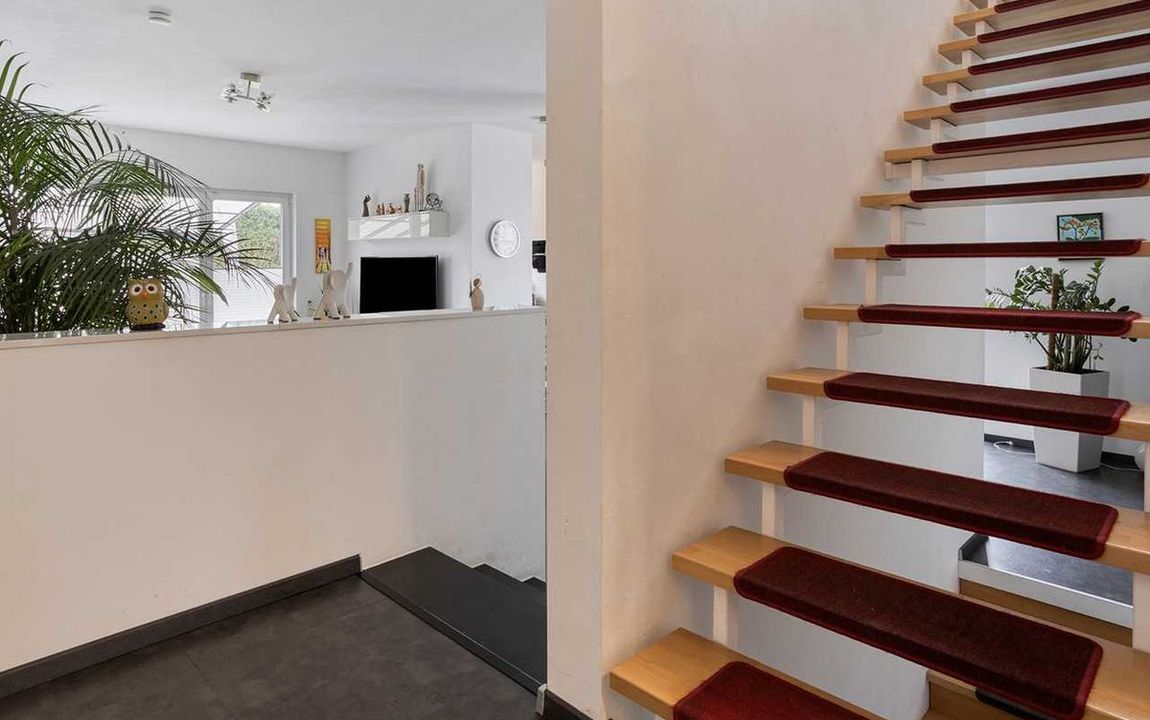 Einkaufsmöglichkeiten des täglichen Bedarfs sowie Schulen, Kindergärten und Ärzte befinden sich in der Nähe, insbesondere im Zentrum von Lintorf, das fußläufig erreichbar ist. Hier gibt es eine Vielzahl an Geschäften, Supermärkten, Restaurants und Cafés, die das Leben in diesem Stadtteil angenehm und praktisch gestalten. Die ruhige Wohnlage in Kombination mit der guten Infrastruktur macht das Haus zu einer attraktiven Adresse für Familien, Paare und Berufspendler.