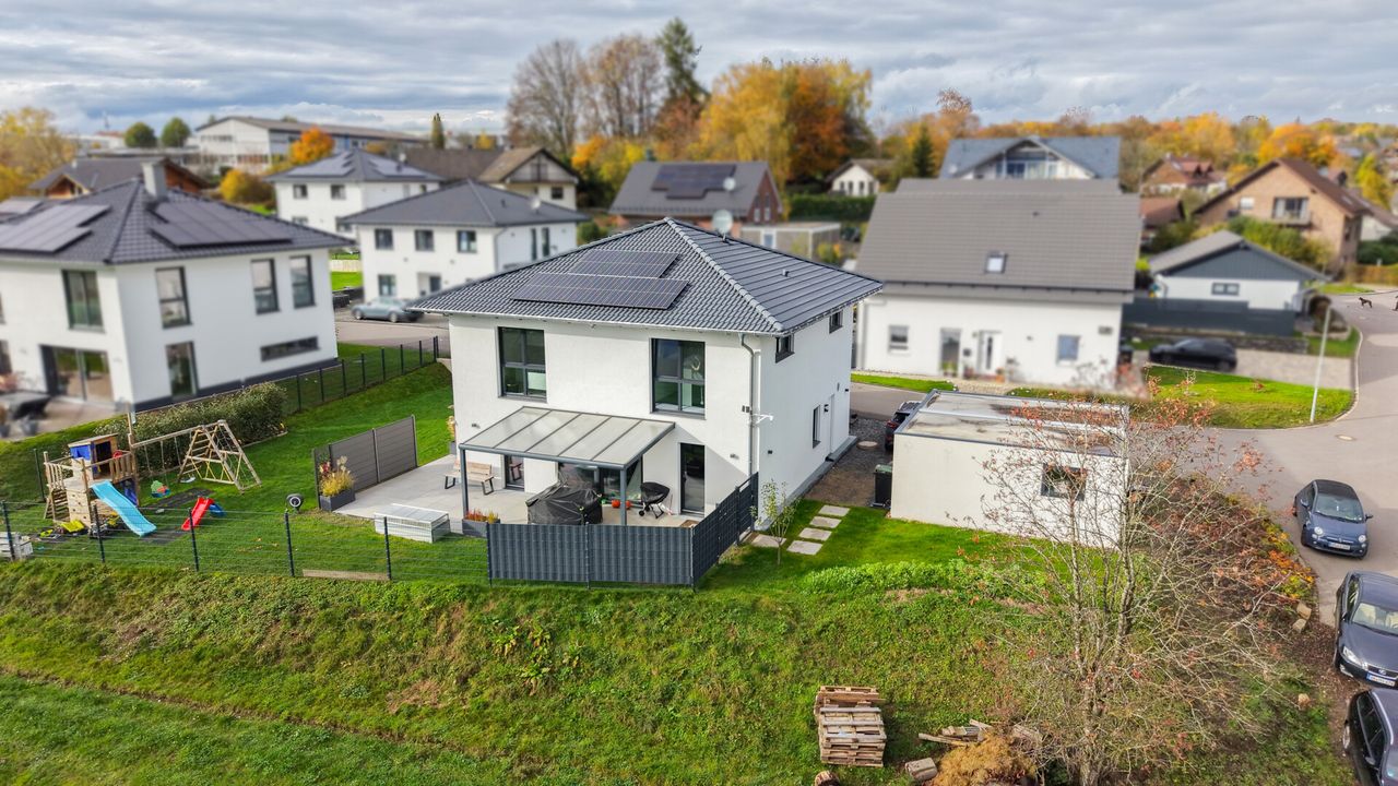 Dieses im Jahr 2022 erbaute Einfamilienhaus überzeugt mit zeitgemäßer Ausstattung, durchdachtem Grundriss und einer Wohnfläche von ca. 148 m² auf einem Grundstück von 730 m². Die Kombination aus energieeffizienter Haustechnik, modernem Design und einer idyllischen Lage mit herrlicher Aussicht macht dieses Zuhause besonders attraktiv.