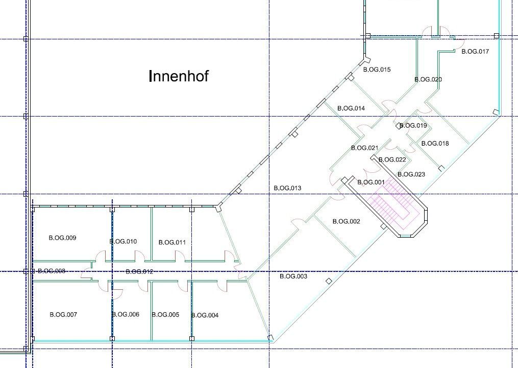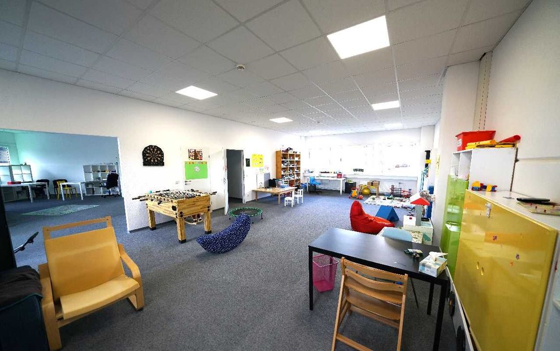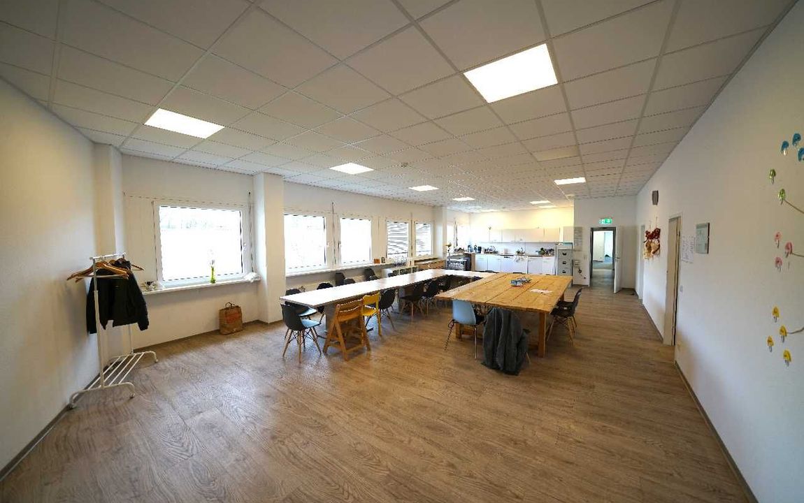 Die Fläche verteilt sich auf 15 abgetrennte Räume, die unterschiedlich genutzt werden. Neben der klassischen Nutzung als Büroräume sind zum Beispiel auch Behandlungs- und Therapieräume oder Spielzimmer sehr gut denkbar. Hinzu kommen ein zentraler und offen gestalteter Lounge- und Konferenzbereich, eine WC-Anlage und eine Küche. Die Fläche ist in Absprache mit dem Eigentümer flexibel aufteilbar, so dass z.B. auch ein zusätzliches Großraumbüro oder weitere abgetrennte Büros denkbar sind.