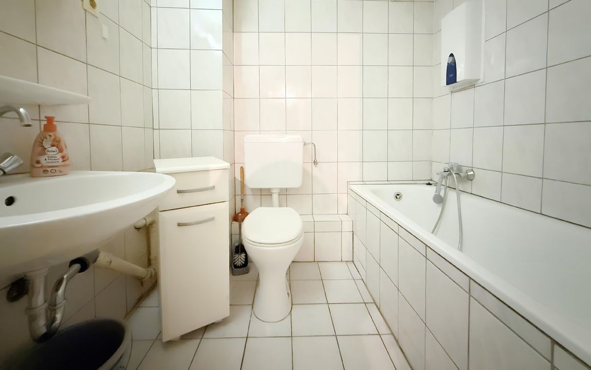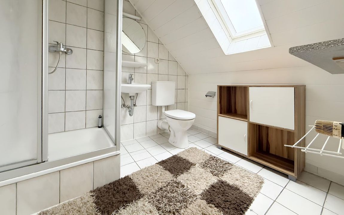 Das Badezimmer ist mit Dusche, WC und Waschbecken ausgestattet und funktional gestaltet. Zusätzliche Abstell- und Staumöglichkeiten innerhalb der Wohnung sorgen für praktische Nutzung im Alltag.