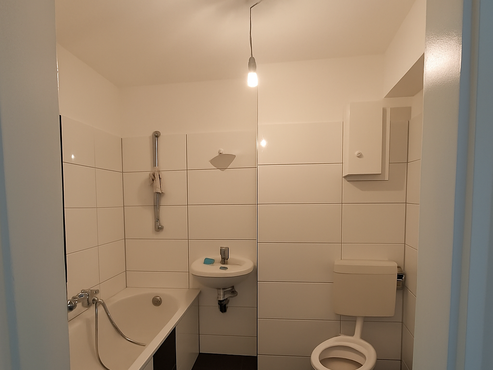 Das Innenliegende Wannenbad verfügt über einen Waschmaschinenanschluss. Ein eigenes Kellerabteil gehört ebenfalls zur Wohnung.