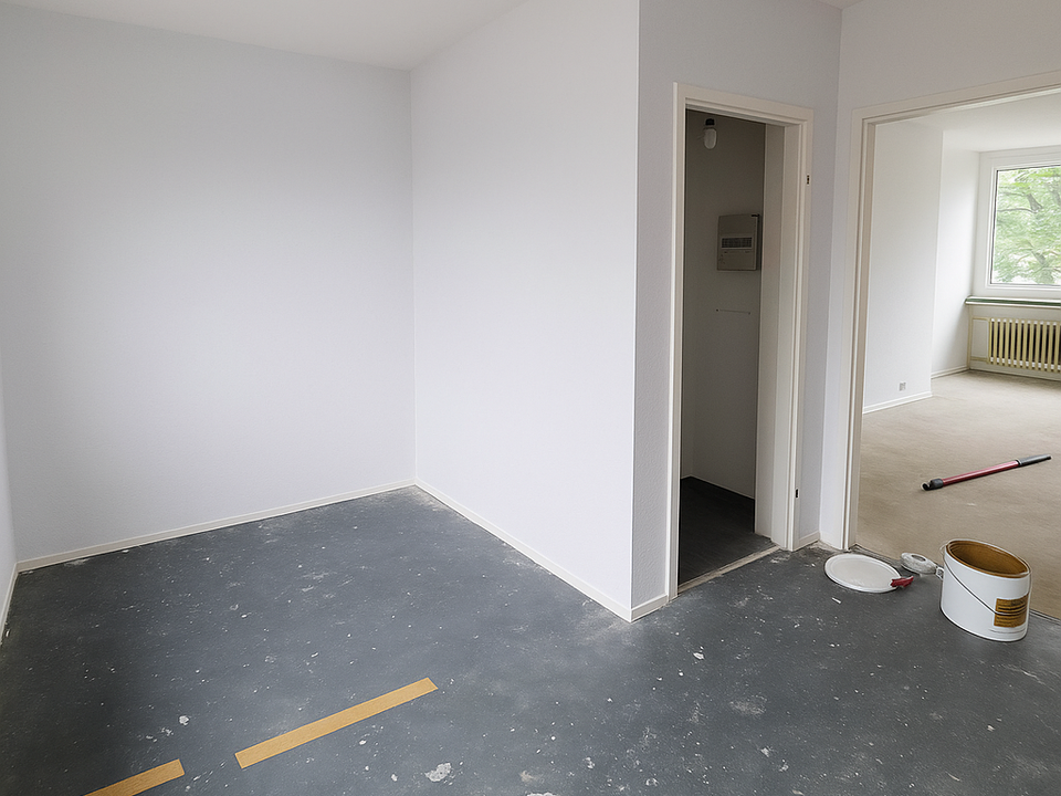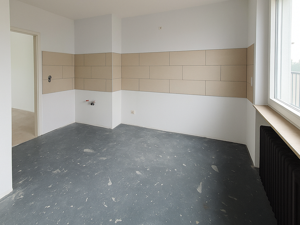 Die Wohnung überzeugt durch drei große, helle Zimmer, die vielseitig nutzbar sind…ideal für Paare oder kleine Familien. Besonders hervorzuheben ist die geräumige Wohnküche mit Essplatz, die viel Platz für gemeinsames Kochen und Verweilen bietet.