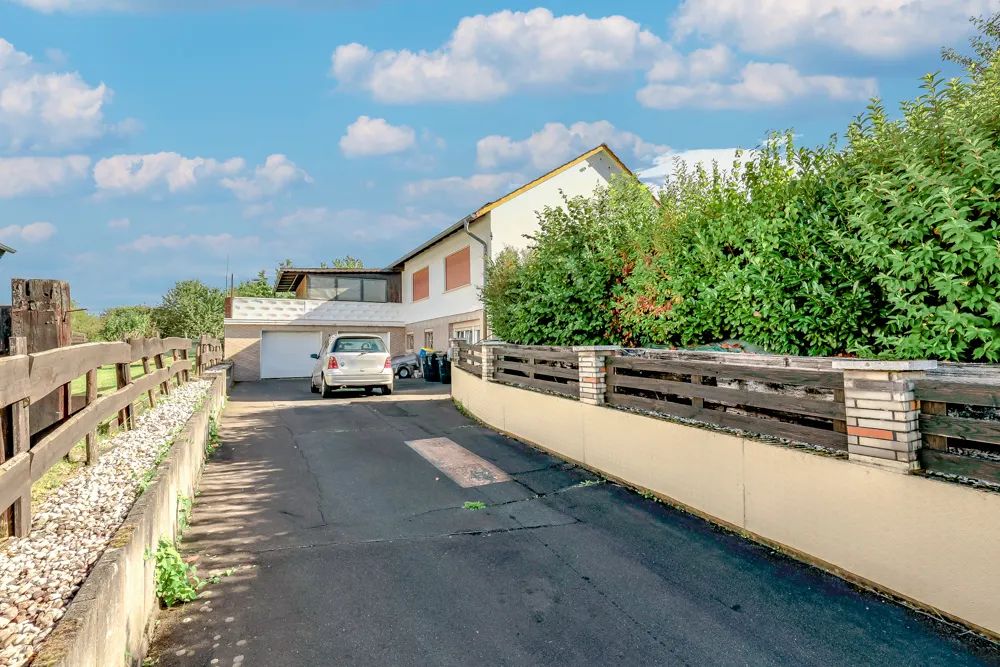 Das großzügige Grundstück bietet viel Platz und Privatsphäre. In der geräumigen Einfahrt können mehrere Fahrzeuge bequem abgestellt werden. Ergänzend dazu steht eine Doppelgarage mit ca. 37 m² Nutzfläche bereit – ideal für Auto- und Motorradliebhaber oder als zusätzlicher Stauraum.